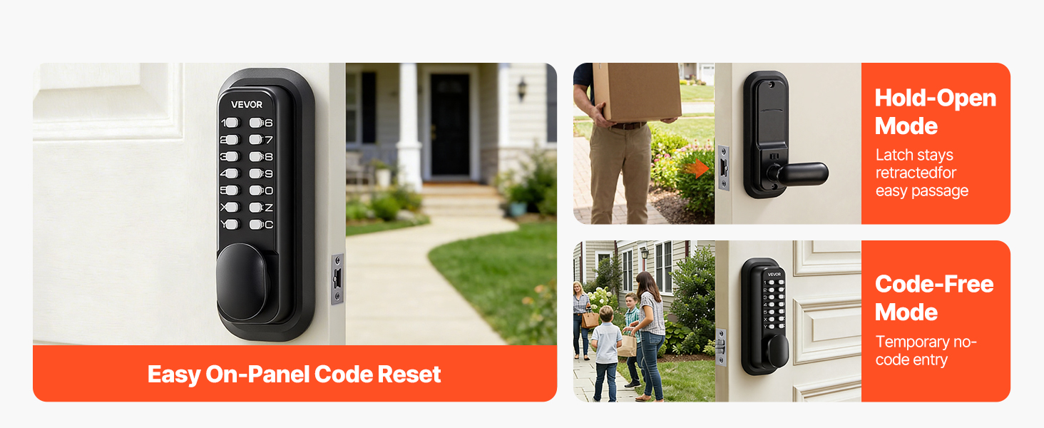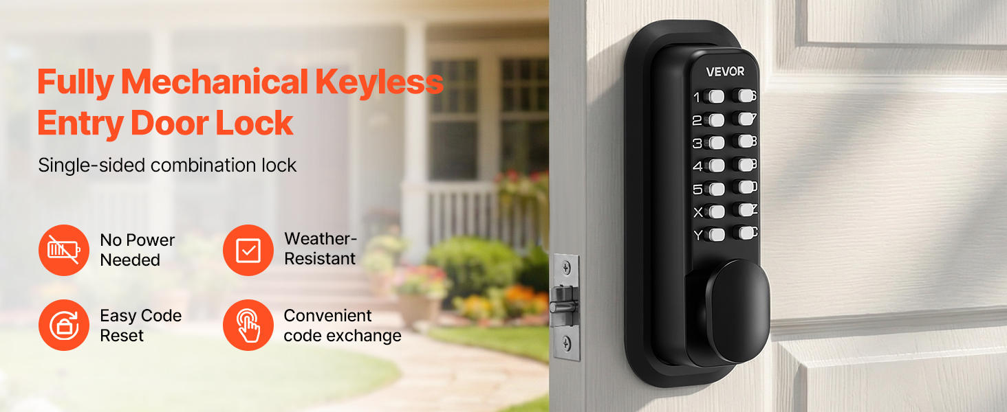 S plne mechanickou klávesnicou, celokovovou konštrukciou a viacerými praktickými režimami poskytuje mechanický bezkľúčový zámok dverí spoľahlivú každodennú bezpečnosť bez kabeláže, aplikácií alebo údržby. Je navrhnutý pre vnútorné aj vonkajšie použitie a poskytuje plynulú prevádzku a dlhodobý výkon.