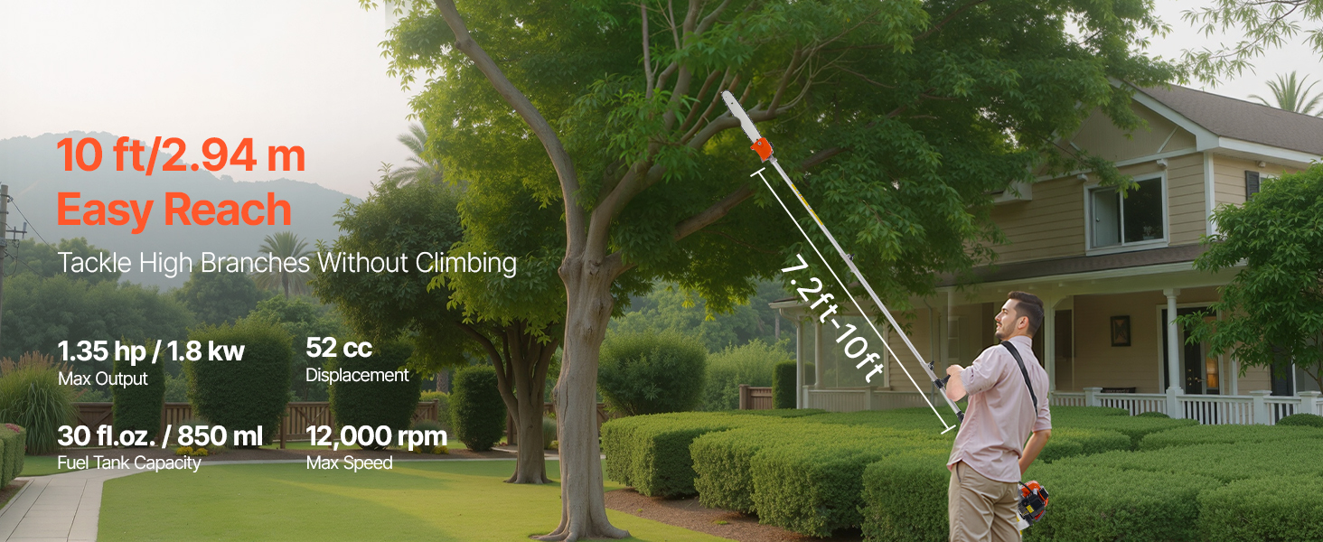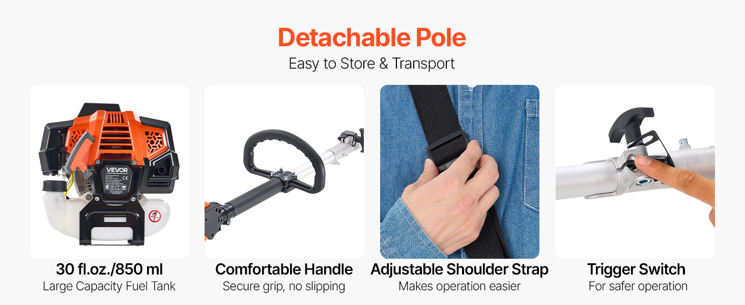 Plynová tyčová píla je navrhnutá pre pohodlie s ergonomickou rukoväťou a polstrovaným ramenným popruhom na zníženie únavy počas dlhšieho používania. Jej výsuvná tyč sa ľahko skladuje a prenáša. Veľkokapacitná palivová nádrž a funkcia automatického mazania zabezpečujú bezproblémovú prevádzku.
