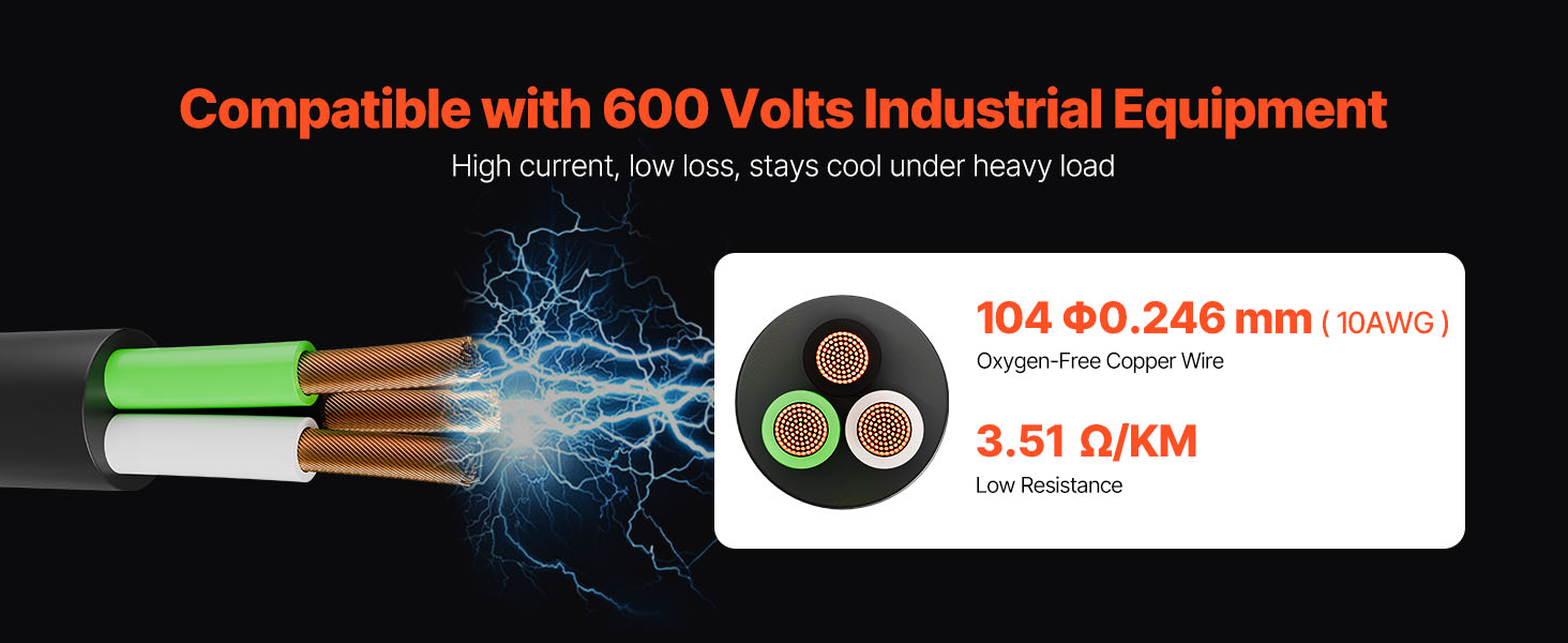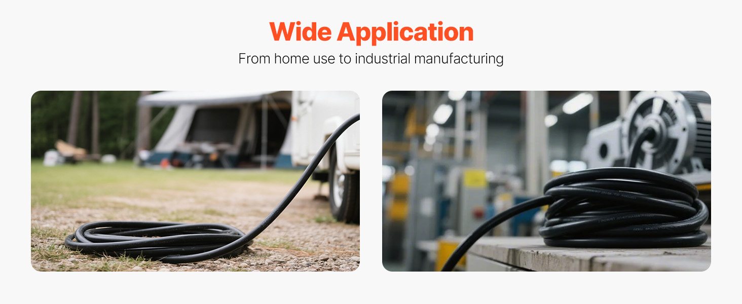 Vďaka plášťu CPE odolnému voči chemickej korózii tento elektrický predlžovací kábel zabraňuje zamrznutiu pri teplote -40 ℃/-104℉ a zmäknutiu pri teplote 90 ℃/194℉. Jeho konštrukcia odolná voči tlaku, výbuchu a plameňom je vhodná do drsných prostredí, ako sú továrne, a poskytuje bezpečné používanie energie.