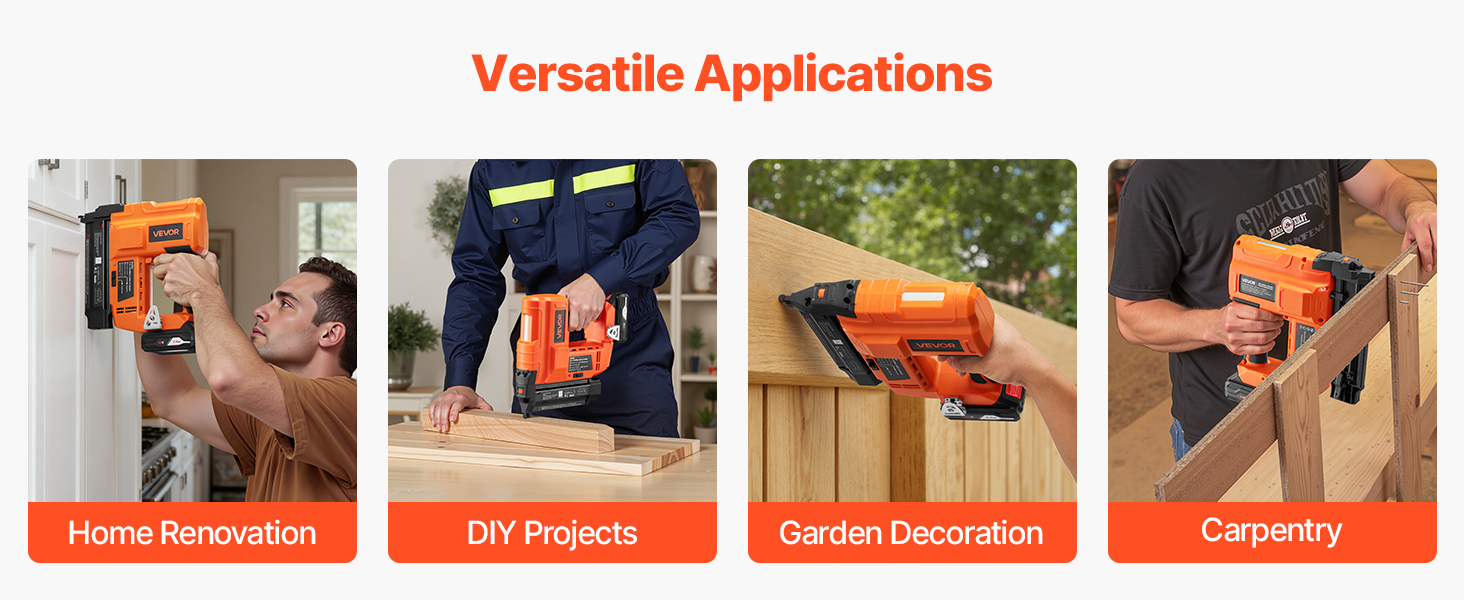 Naša 20V klincovačka je vhodná na renováciu interiérov, výrobu nábytku a projekty spracovania dreva. Či už ste stavbár, stolár alebo domáci majster, je to vaša ideálna voľba.
