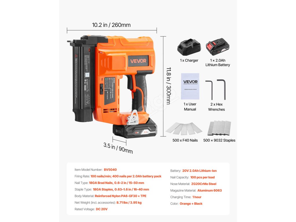 Akumulátorová klincovačka je kompatibilná s klincami s priemerom 0,6-2,2 palca (15-55 mm) a sponkami s priemerom 0,6-1,6 palca (16-40 mm). Ľahko zvládne upevňovanie a dekoráciu.