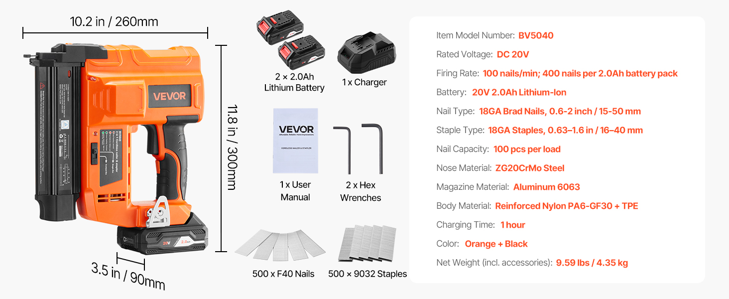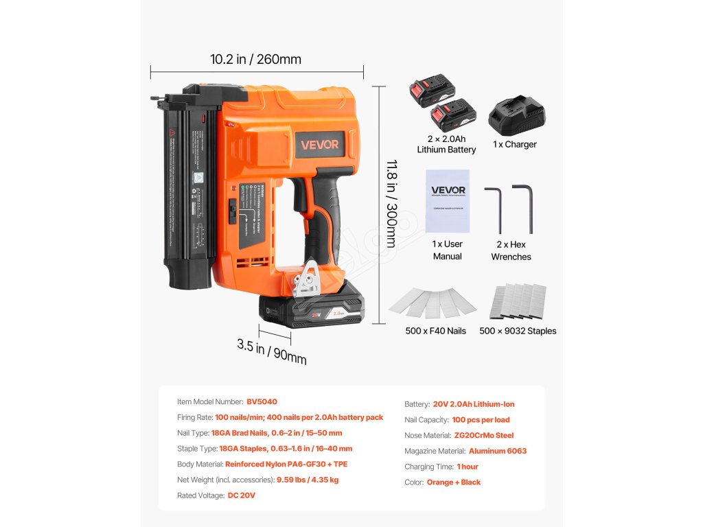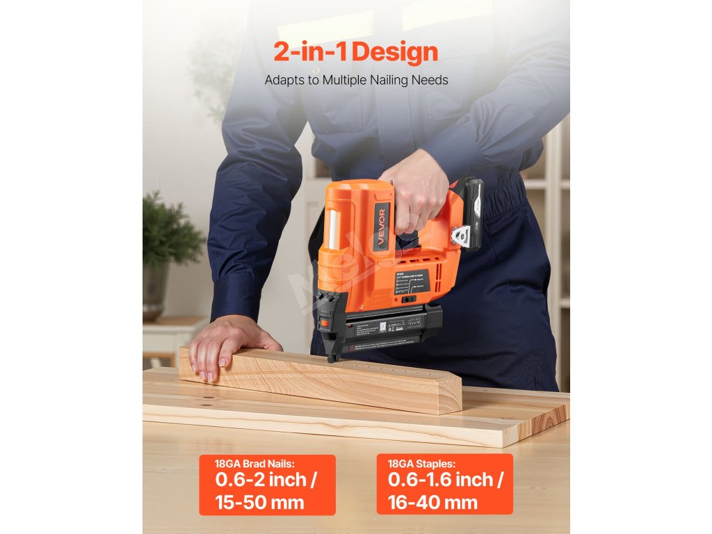Akumulátorová klincovačka je kompatibilná s klincami s priemerom 0,6-2,2 palca (15-55 mm) a sponkami s priemerom 0,6-1,6 palca (16-40 mm). Ľahko zvládne upevňovanie a dekoráciu.