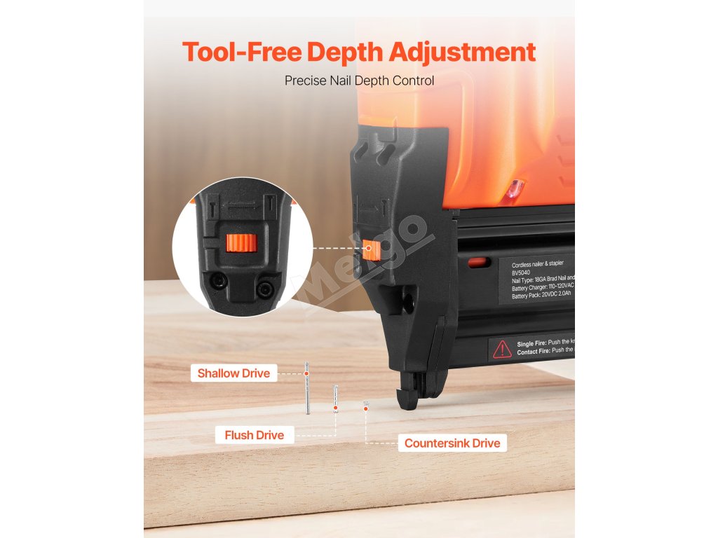 Jednoduchým otočením gombíka ľahko doladíte hĺbku zatĺkania klincov. Táto klincovačka s priemerom 18 zaručuje zatĺkanie každého klinca presne do potrebnej hĺbky, čím sa dosahujú presné výsledky s minimálnym úsilím.