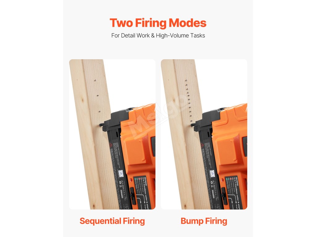 Naša batériová klincovačka podporuje rýchlosť streľby až 100 klincov/min, čo je vhodné pre veľké projekty vyžadujúce rýchlosť aj presnosť. Jej režim nepretržitej streľby zabezpečuje plynulý, neprerušovaný výkon.