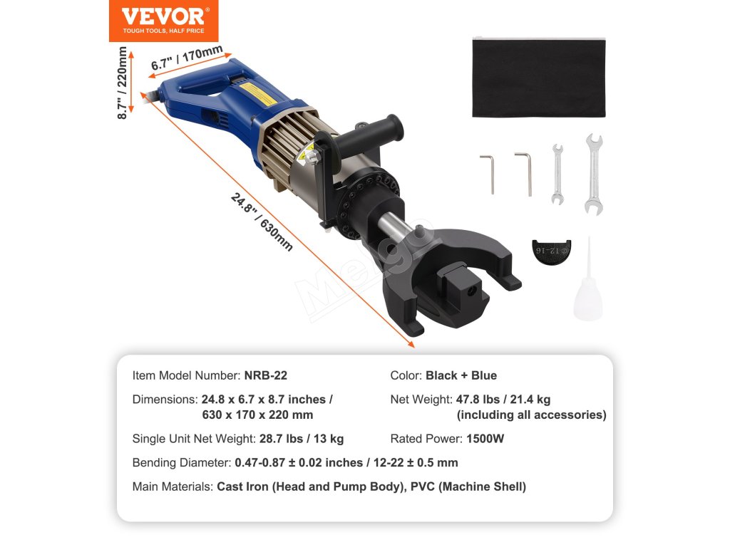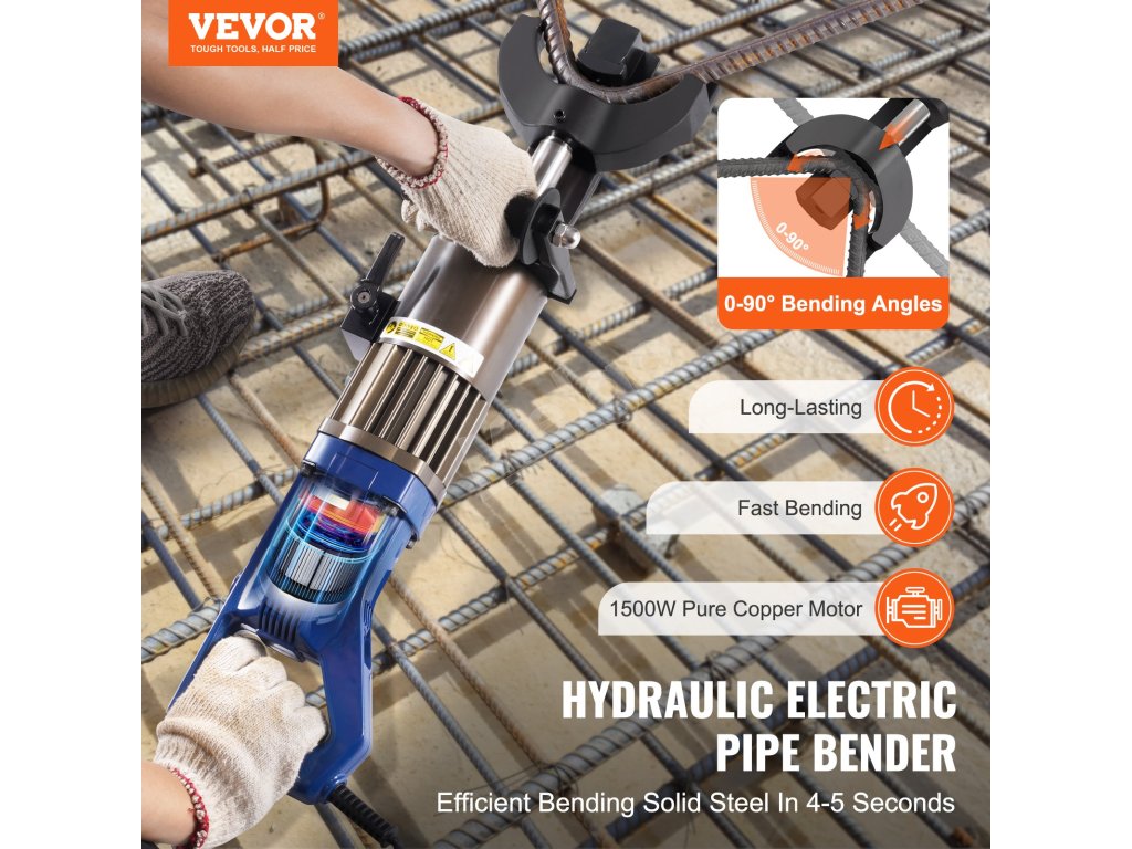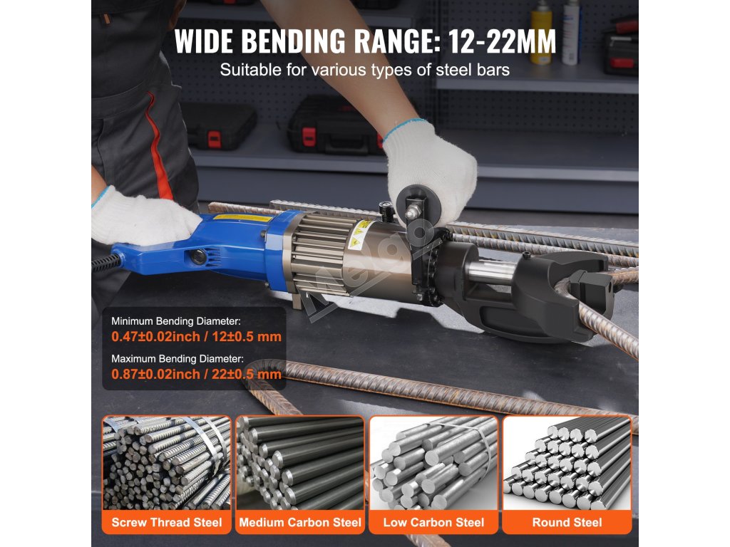 Elektrická hydraulická ohýbačka výstuže 1500W, 12–22 mm, do 4 s