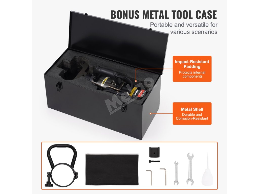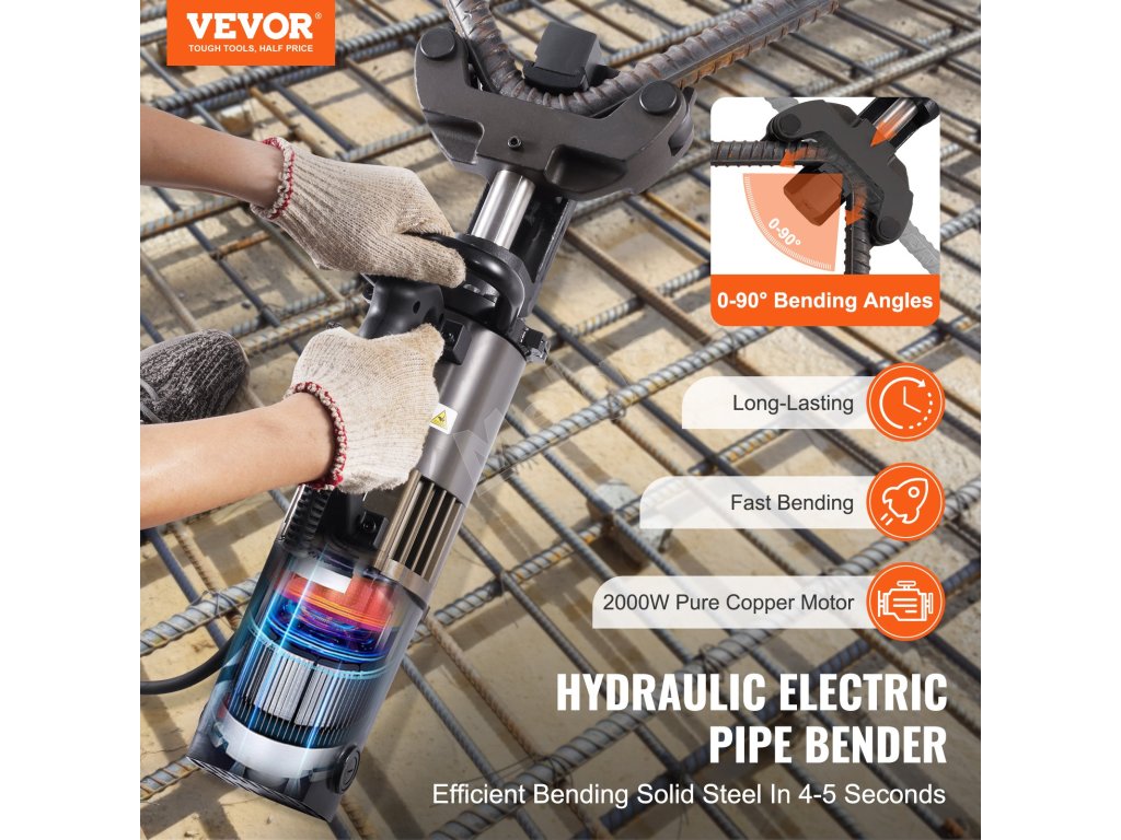 Hydraulická elektrická ohýbačka výstuže vám pomôže rýchlo dokončiť úlohy vďaka širokému rozsahu ohýbania a dodávanému boxu na náradie. Či už na stavenisku alebo v inom prostredí, môžete začať pracovať rýchlo.