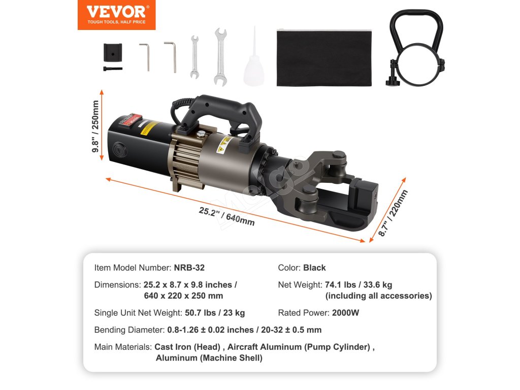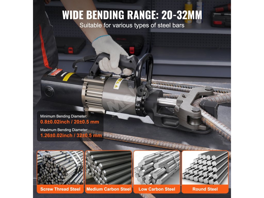 Elektrická hydraulická ohýbačka výstuže 2000 W, 20–32 mm, 5 s prenosná