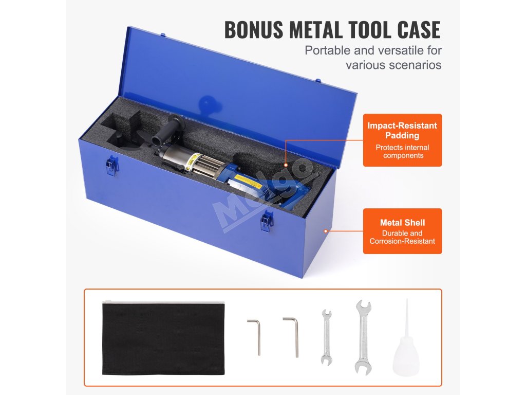 Hydraulická elektrická ohýbačka výstuže vám pomôže rýchlo dokončiť úlohy vďaka širokému rozsahu ohýbania a dodávanému boxu na náradie. Či už na stavenisku alebo v inom prostredí, môžete začať pracovať rýchlo.