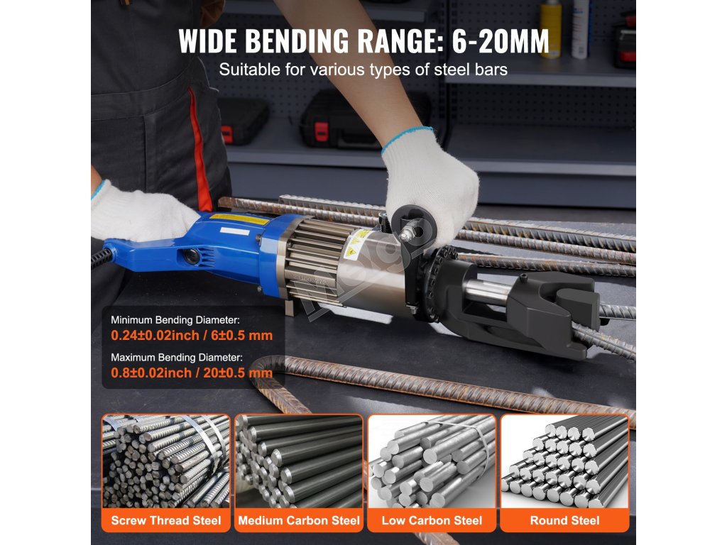 Elektrický hydraulický ohýbač výstuže 1500 W, do 3/4 inch, 6–20 mm