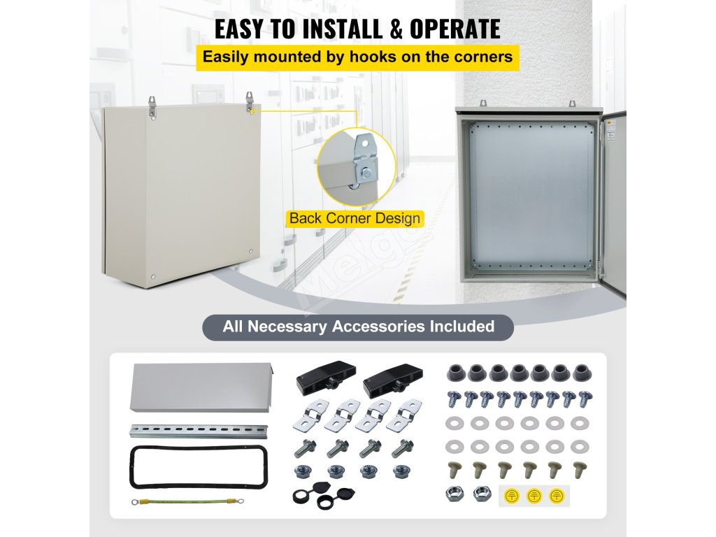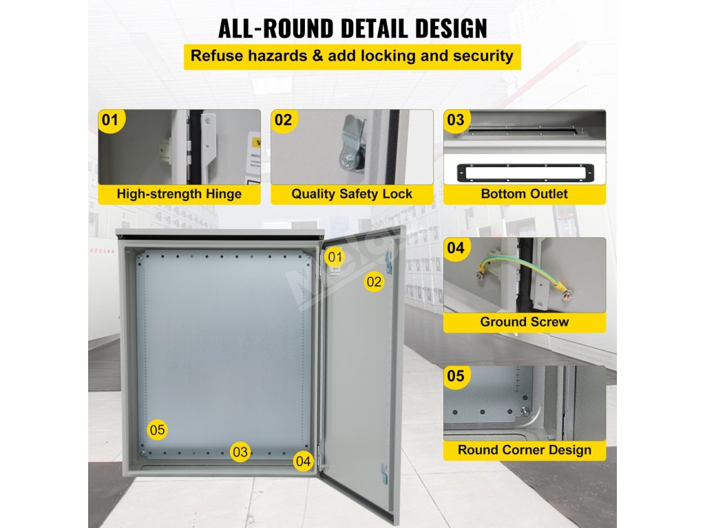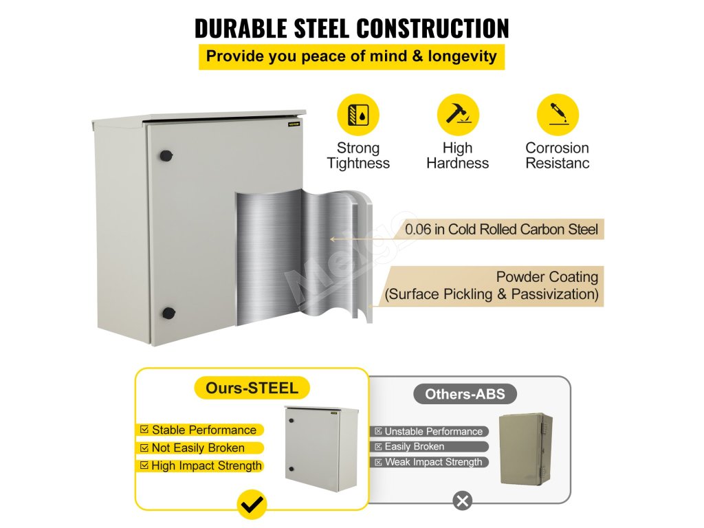 Elektrická rozvodná skrinka 60×60×30 cm, studenovalcovaná oceľ, IP65