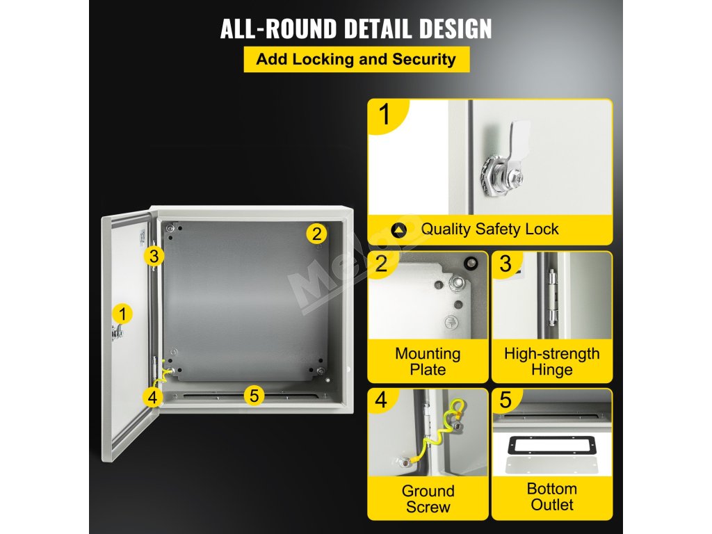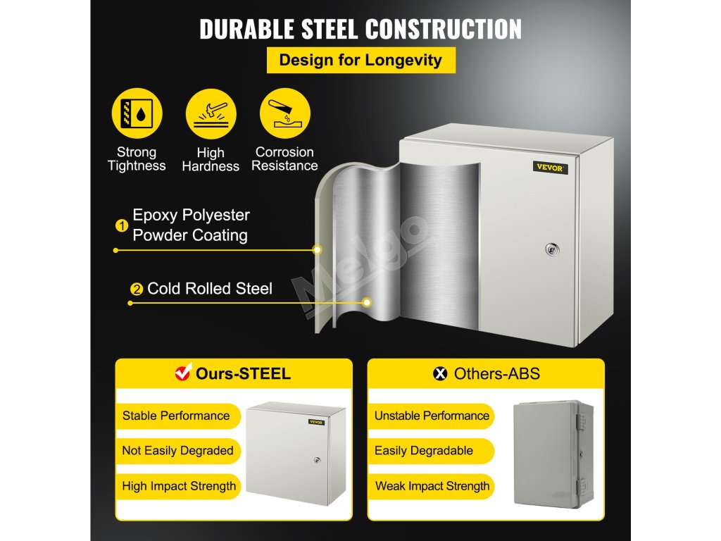 Elektrická skrinka je vyrobená z ocele valcovanej za studena s hrúbkou 0,059''/1,5 mm, vyznačuje sa vysokou húževnatosťou, odolnosťou proti tlaku a hrdzaveniu. Plášť je vyrobený z epoxidového polyesterového práškového laku, ktorý má dobré mechanické a vyrovnávacie vlastnosti.