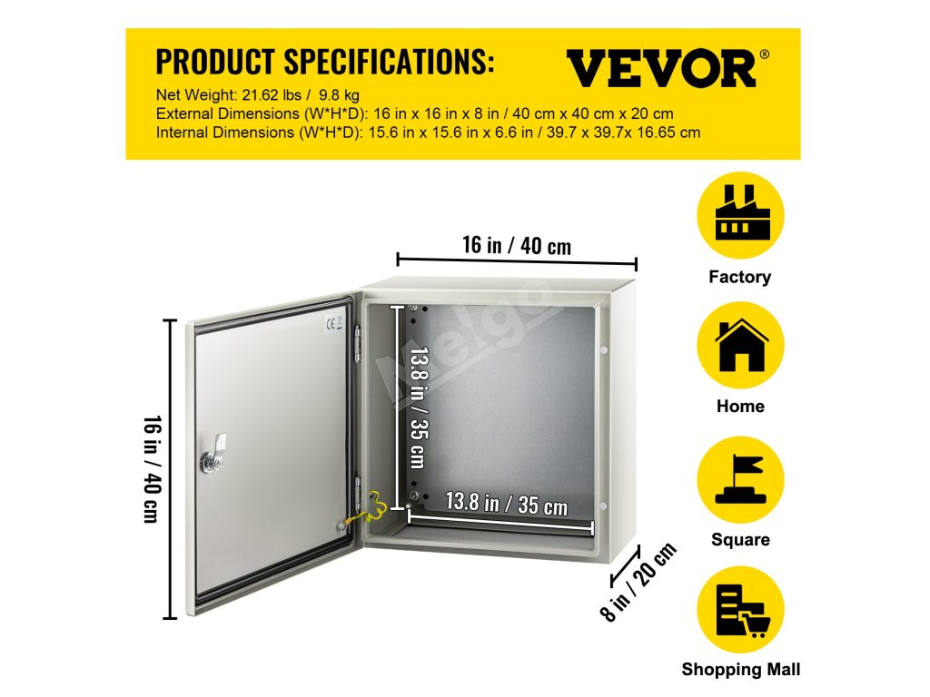 Elektrická rozvodná skrinka oceľová 40×40×20 cm NEMA 4X IP66