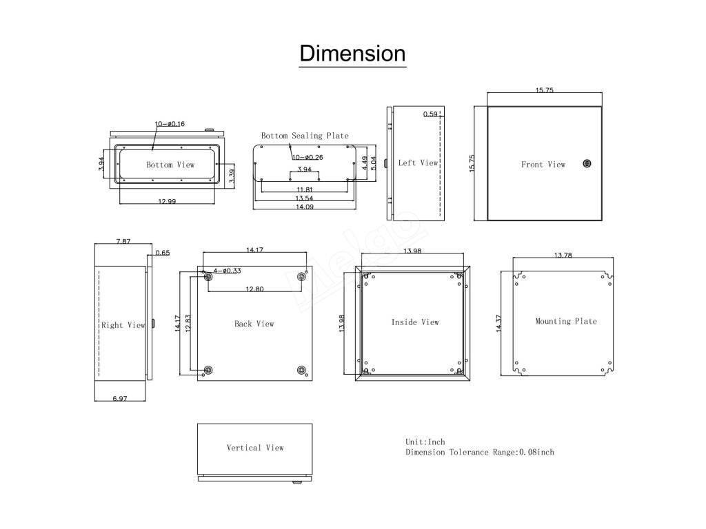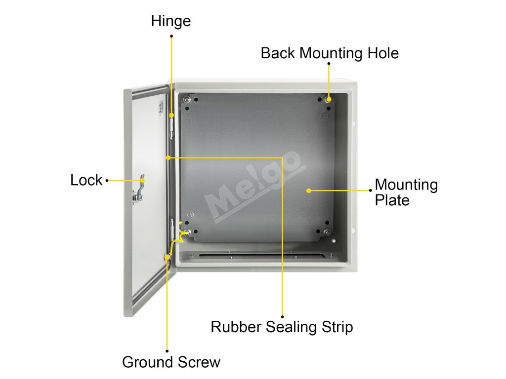 Odnímateľná pozinkovaná zadná doska s rozmermi 2 MM umožňuje jednoduchú inštaláciu dosiek plošných spojov, svoriek alebo iných elektrických komponentov, ktoré je potrebné upevniť. Na zadnej strane sa nachádzajú aj štyri montážne otvory na jednoduchú montáž na stenu.