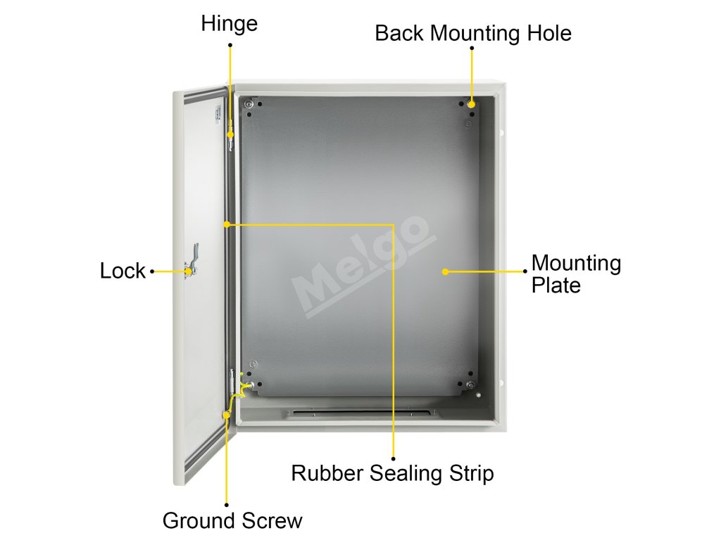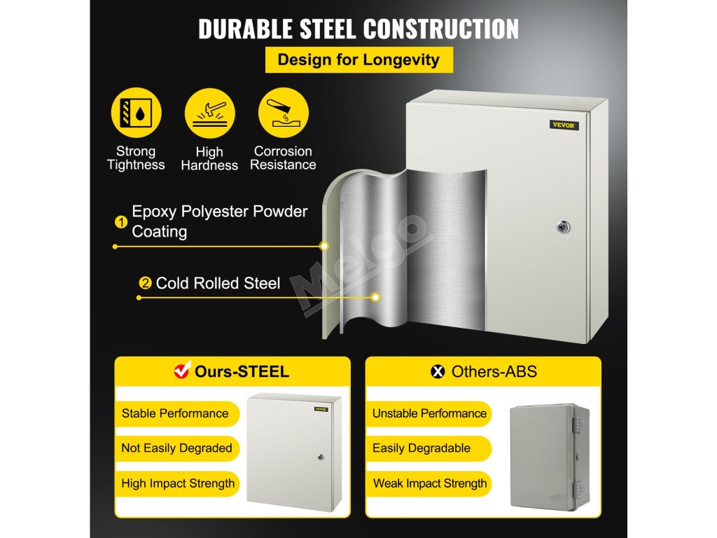 Elektrická skrinka je vyrobená z ocele valcovanej za studena s hrúbkou 0,059''/1,5 mm, vyznačuje sa vysokou húževnatosťou, odolnosťou proti tlaku a hrdzaveniu. Plášť je vyrobený z epoxidového polyesterového práškového laku, ktorý má dobré mechanické a vyrovnávacie vlastnosti.