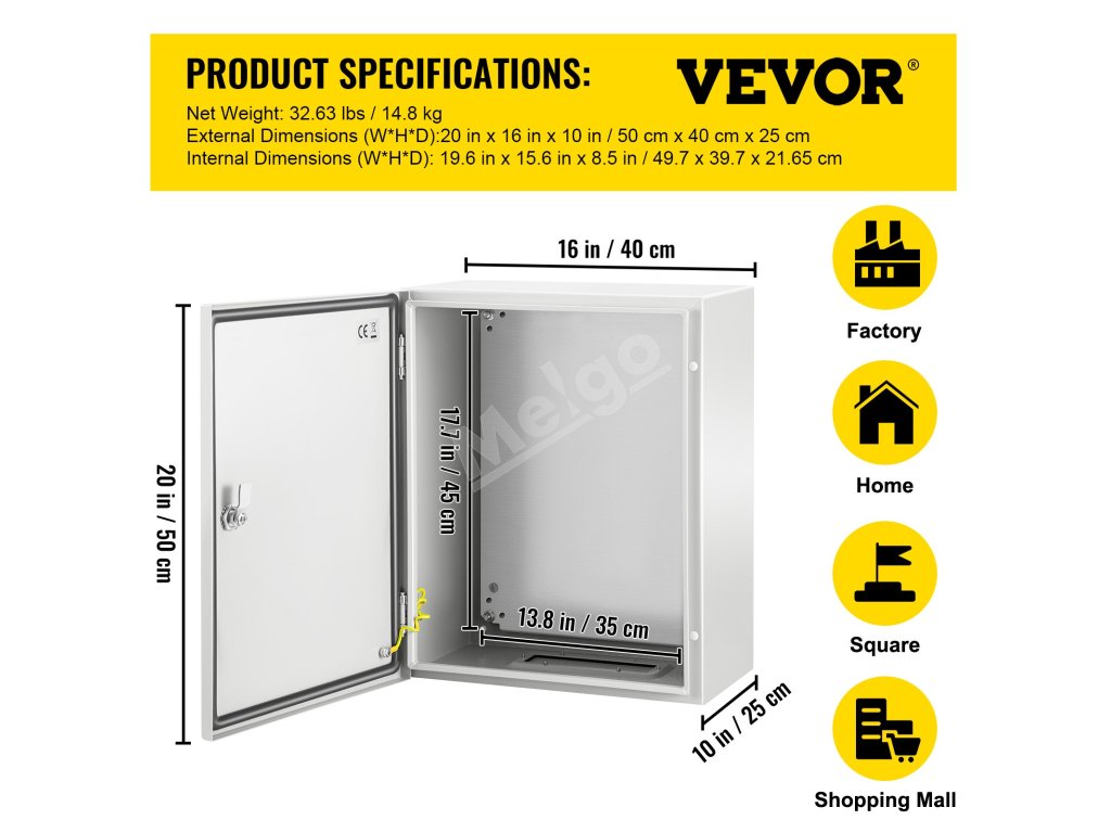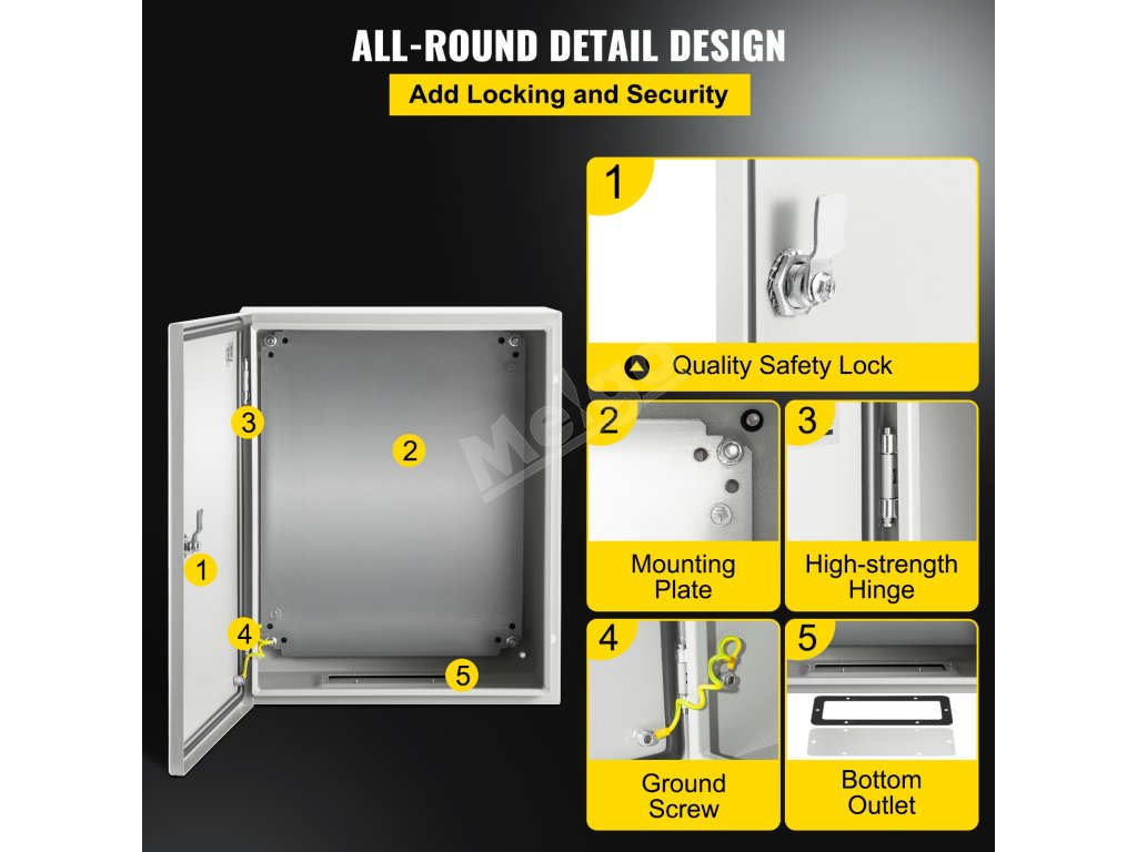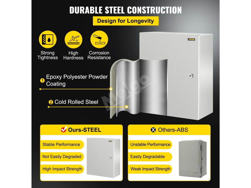 Elektrická skrinka je vyrobená z ocele valcovanej za studena s hrúbkou 0,059''/1,5 mm, vyznačuje sa vysokou húževnatosťou, odolnosťou proti tlaku a hrdzaveniu. Plášť je vyrobený z epoxidového polyesterového práškového laku, ktorý má dobré mechanické a vyrovnávacie vlastnosti.