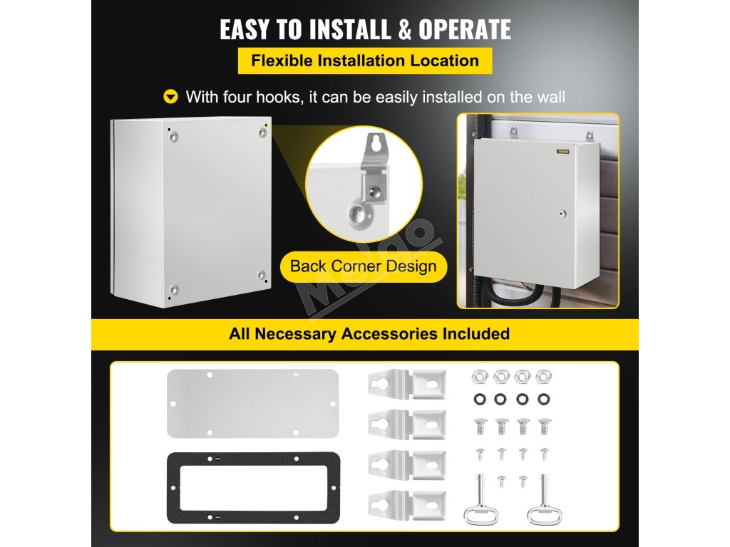 Oceľová rozvodná skrinka NEMA 4X IP66 50×40×25 cm s montážnou platňou