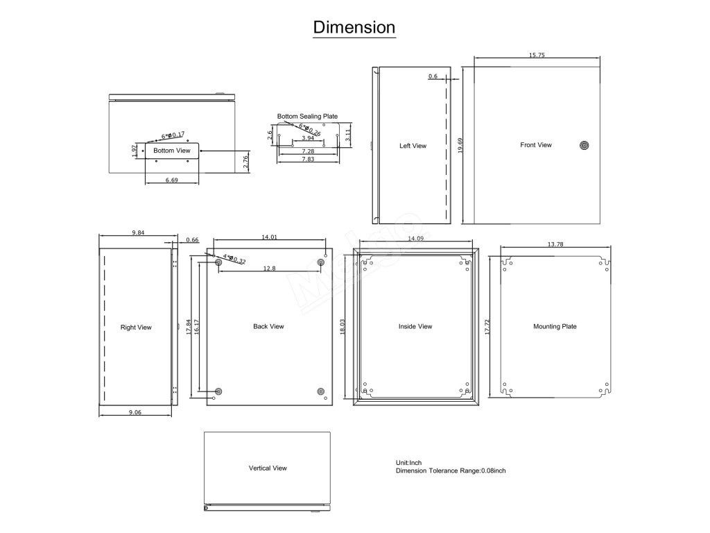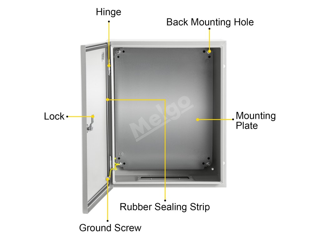 Odnímateľná pozinkovaná zadná doska s priemerom 2 mm umožňuje jednoduchú inštaláciu dosiek plošných spojov, svoriek alebo iných elektrických komponentov, ktoré je potrebné upevniť. Na zadnej strane sa nachádzajú aj štyri montážne otvory na jednoduchú montáž na stenu.