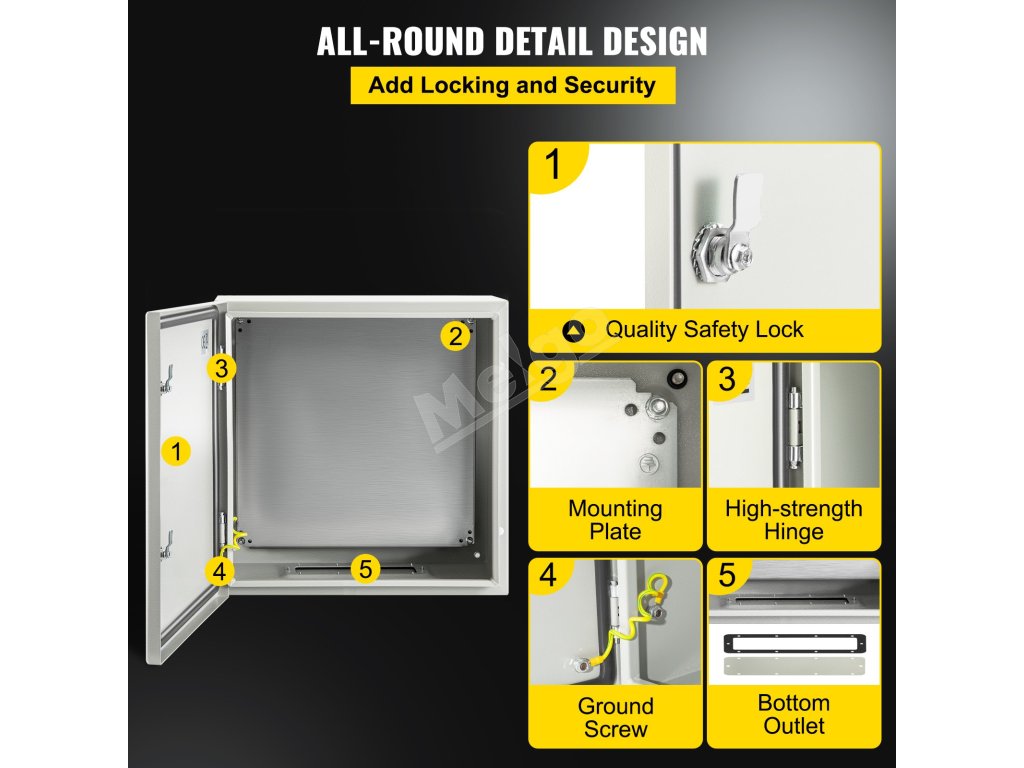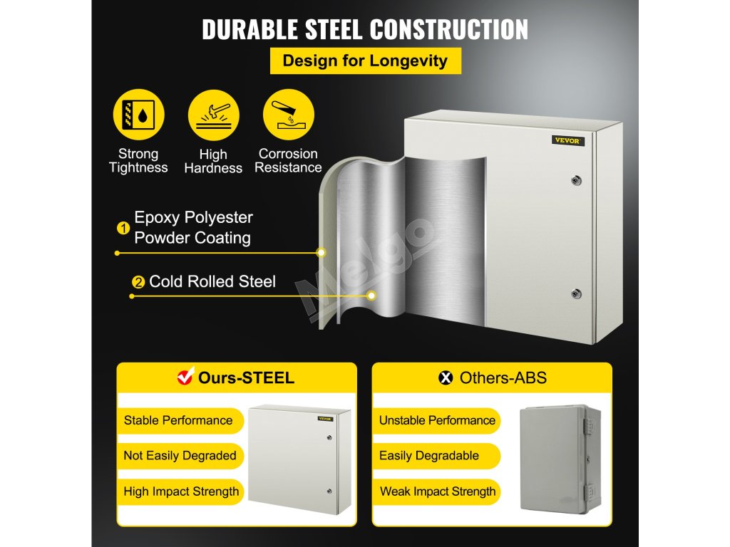 Elektrická skrinka je vyrobená z ocele valcovanej za studena s hrúbkou 0,059''/1,5 mm, vyznačuje sa vysokou húževnatosťou, odolnosťou proti tlaku a hrdzaveniu. Plášť je vyrobený z epoxidového polyesterového práškového laku, ktorý má dobré mechanické a vyrovnávacie vlastnosti.