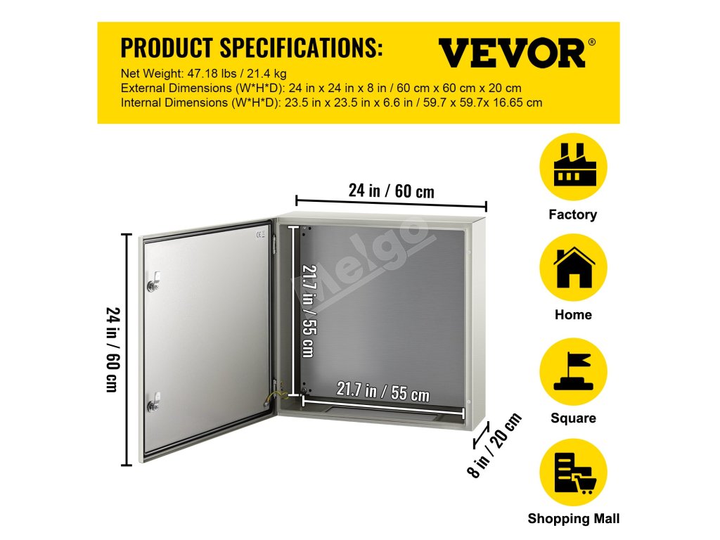Oceľová rozvodná skrinka NEMA 4X IP66 60×60×20 cm s doskou vonkajšie