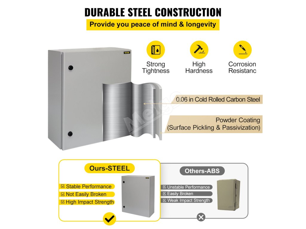 Rozvodná skrinka 70×50×20 cm, IP65 NEMA 4, studená oceľ, s pántmi