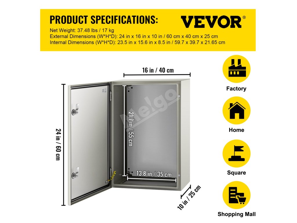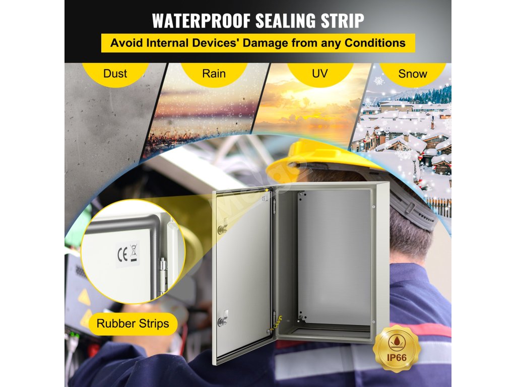 Oceľová rozvodná skrinka 60×40×25 cm NEMA 4X IP66, s montážnou platňou