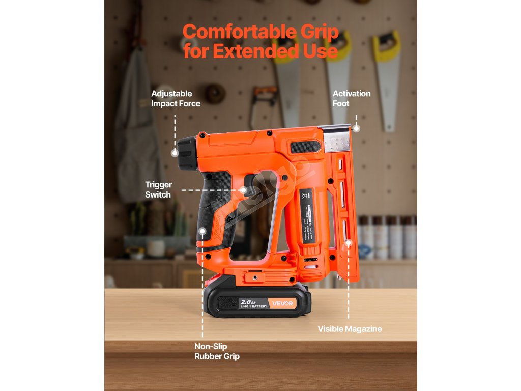 Táto akumulátorová klincovačka je vybavená vysokokapacitnou batériou, ktorá dokáže na plné nabitie vystreliť až 2 000 klincov. Akumulátor zaručuje dlhú životnosť a počas používania zostáva chladný, čo vám umožní pracovať dlhší čas bez prerušenia.