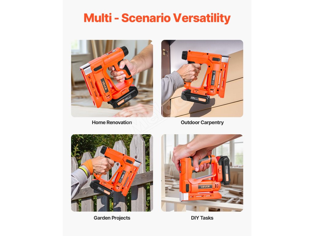 Táto akumulátorová klincovačka 2 v 1 kombinuje klincovačku a sponkovačku v jednom, bez káblov, ktoré by obmedzovali váš pohyb. Vezmite si ju kamkoľvek a ľahko zvládnite rôzne upevňovacie úlohy.