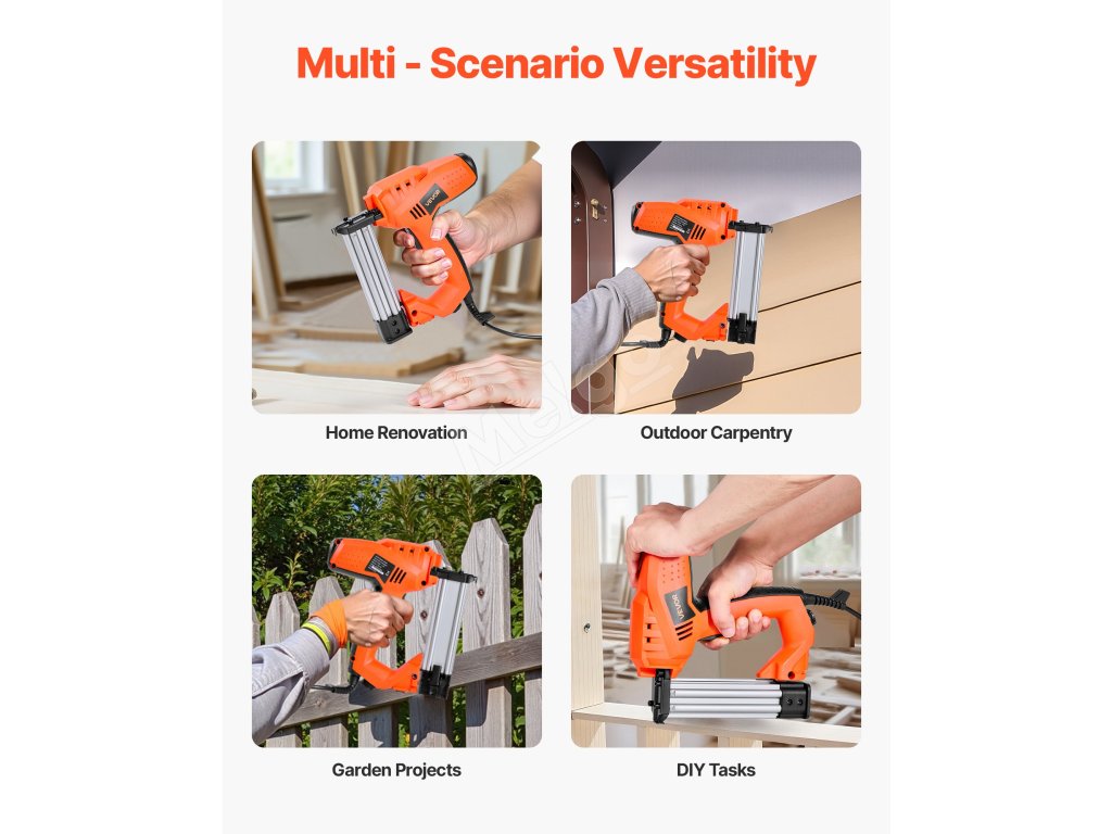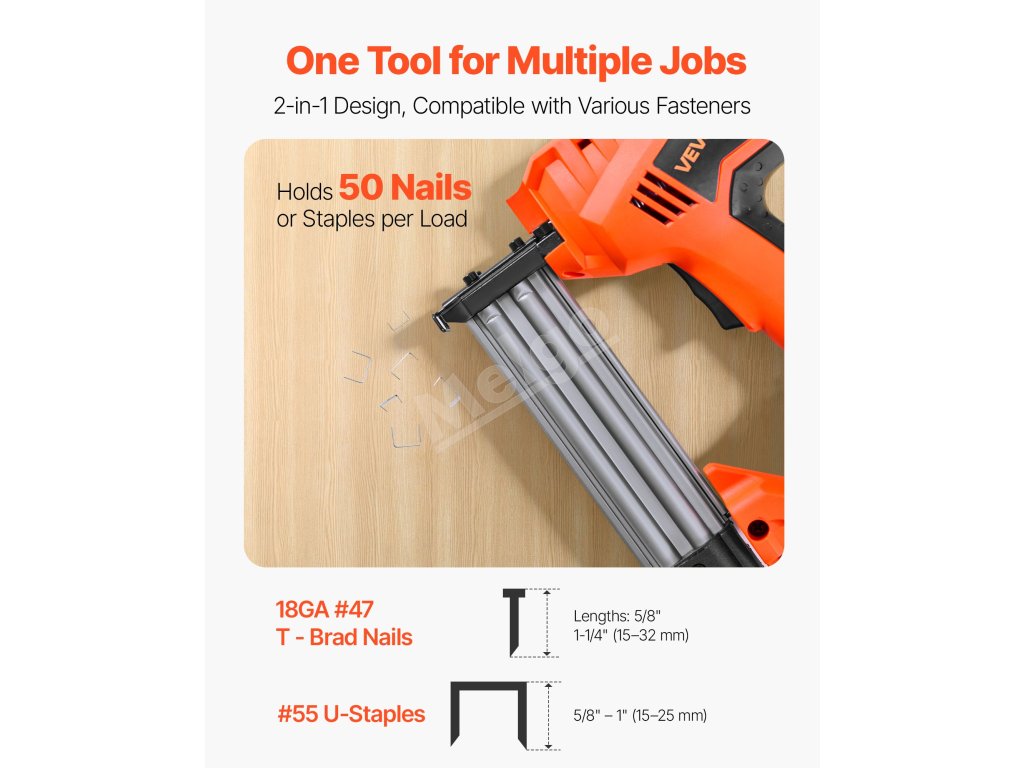 Táto elektrická klincovačka 2 v 1 v sebe spája klincovanie a sponkovanie. Bez obáv o čas chodu a prispôsobiteľná rôznym pracovným prostrediam, pokrýva širokú škálu upevňovacích prác.