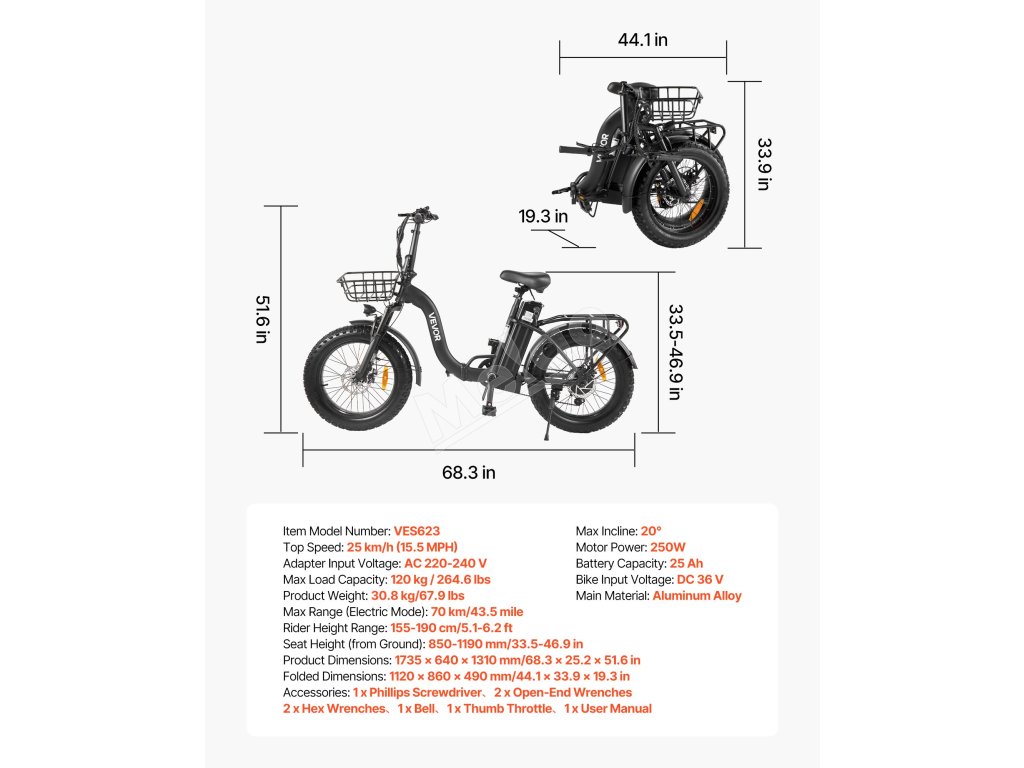 Skladací elektrobicykel 250W 36V 25 km/h 25Ah 70 km 7 prevodov
