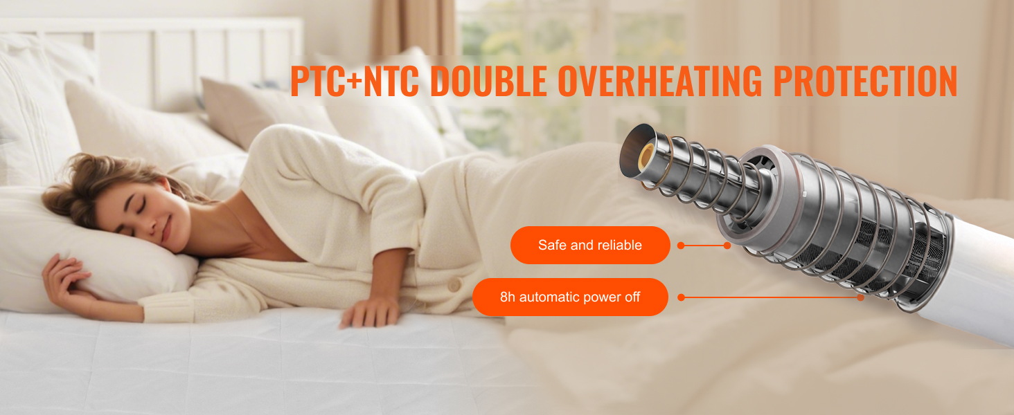 Elektrická deka využíva pokročilú technológiu dvojitej ochrany proti prehriatiu PTC+NTC, ktorá dokáže účinne zabrániť prehriatiu deky a predísť prípadnému riziku požiaru, takže si môžete užívať teplo deky a zároveň sa