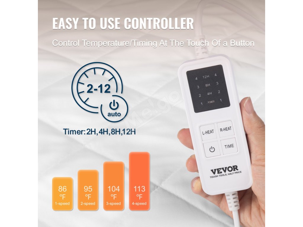 Táto elektrická plachta ponúka funkciu nastavenia viacerých rýchlostí teploty, ktorá dokáže uspokojiť potreby vykurovania rôznych ľudí. Medzitým je vybavená aj funkciou automatického vypnutia, ktorá vám umožňuje nastaviť automatické vypnutie podľa vlastného času práce a odpočinku.