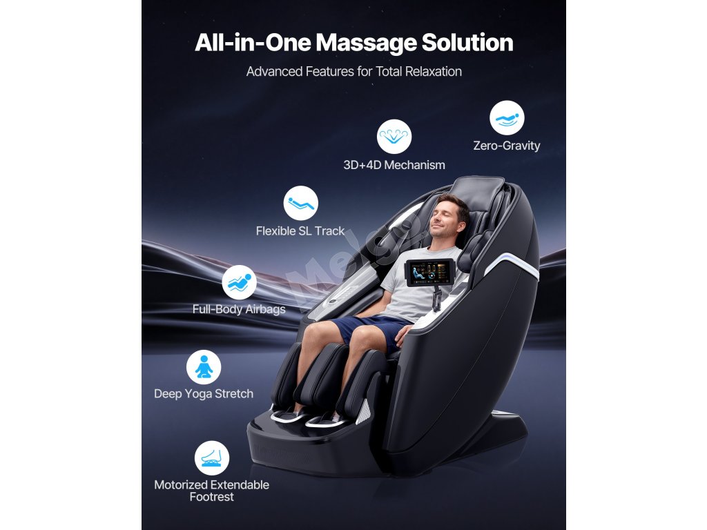 Masážne kreslo 4D+3D, sl dráha, el. opierka nôh, airbagy, vyhrievanie