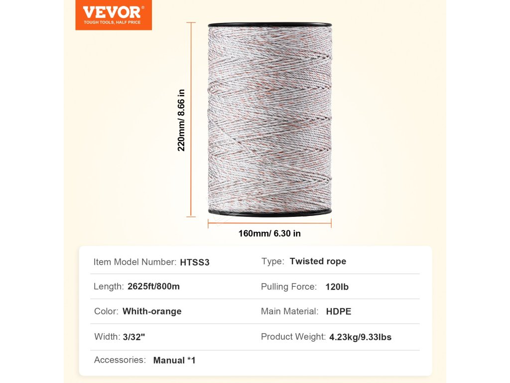 Vďaka dĺžke až 2625 stôp/800 m tento elektrický ohradník pre dobytok ľahko pokryje veľké plochy vašej farmy. Vďaka priloženému plastovému bubnu ABS je navíjanie a odvíjanie drôtu pohodlnejšie a pri inštalácii môžete použiť vozík s bubnom, čo výrazne zvyšuje efektivitu.