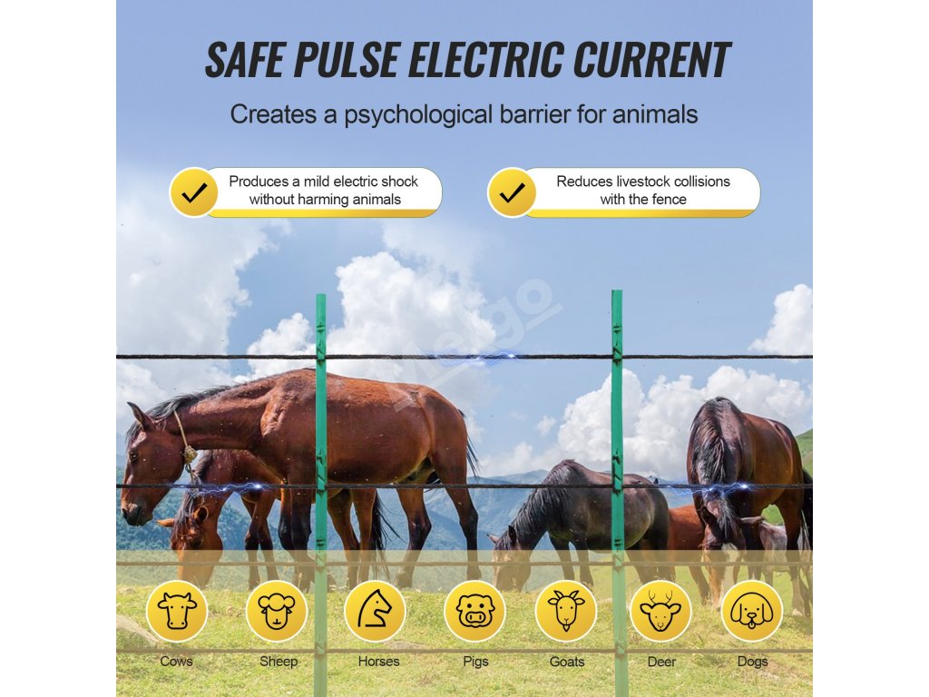 Toto lano elektrického ohradníka účinne zabraňuje vniknutiu zvierat a chráni vaše polia, záhrady a rastliny pred poškodením. Odrádza aj predátorov. Účinný pulzný prúd vytvára psychologickú bariéru, čím zabezpečuje bezpečie vašej farmy a zvierat.