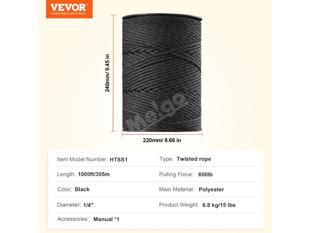 Lanko pre elektrický ohradník 1000Ft 305M 1/4" 2 medené pramene