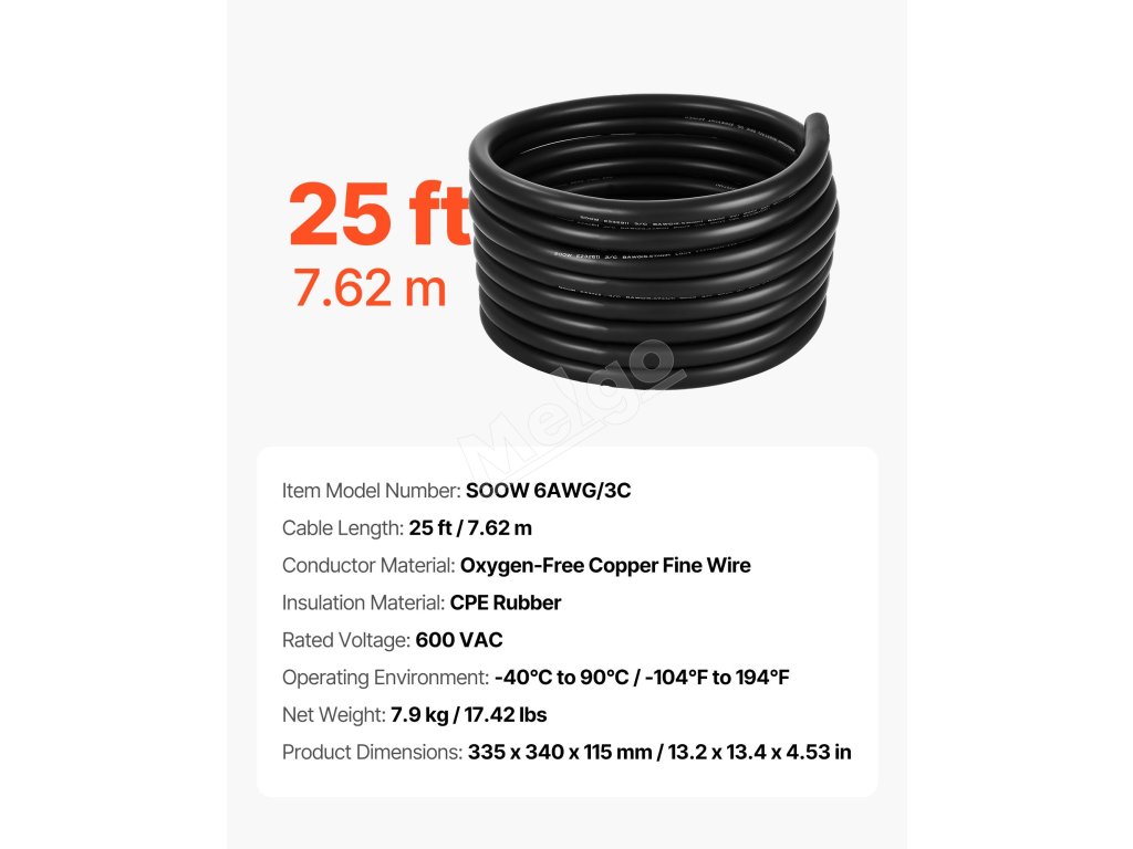 Predlžovací elektrický kábel 25 ft (7.62 m) 6awg (16 mm²) medený