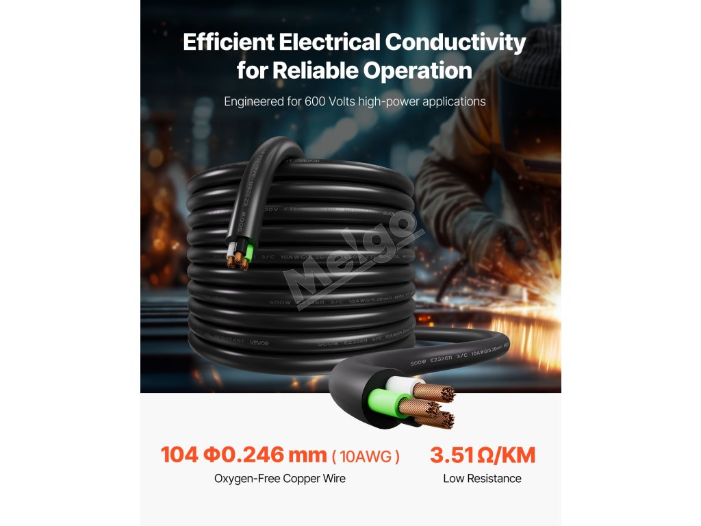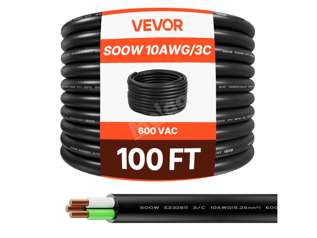 Predlžovací elektrický kábel 30,48 m dlhý 10 awg (6 mm²) medený