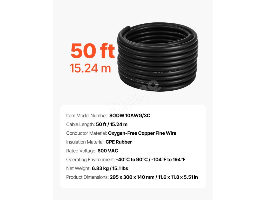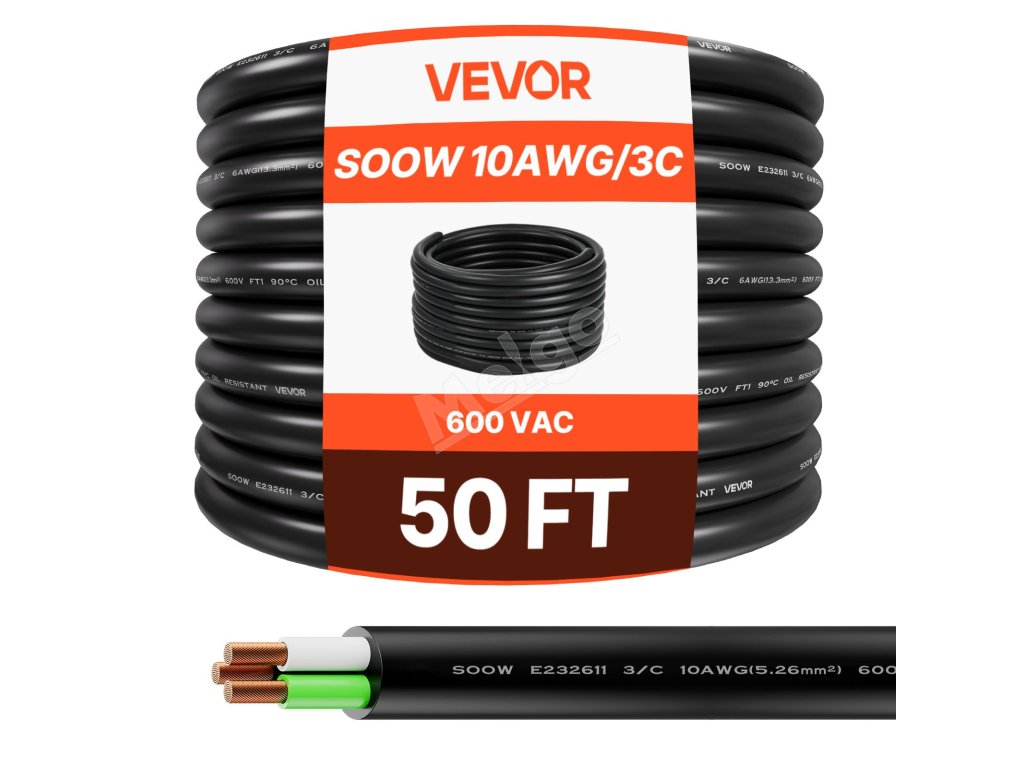 Predlžovací elektrický kábel 50 ft (15.24 m) 10awg (6 mm²) medený