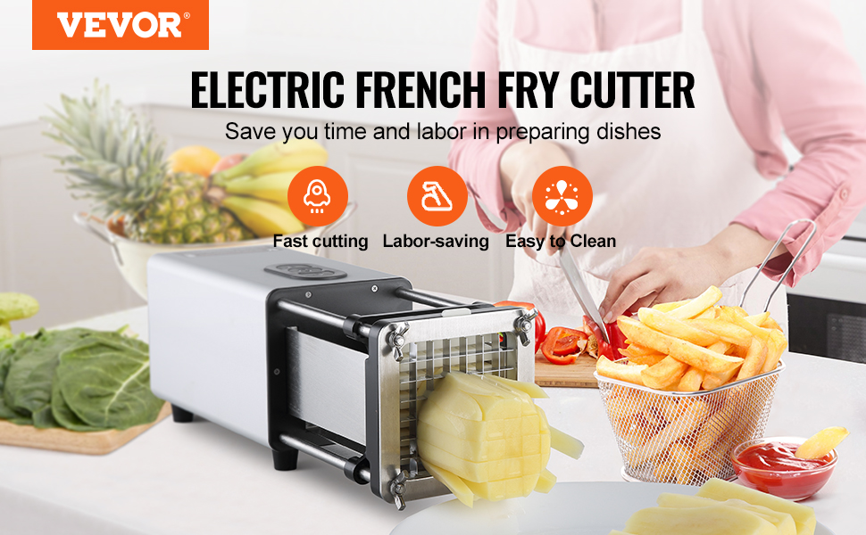 Krájač na hranolky VEVOR je vybavený ostrými čepeľami z nehrdzavejúcej ocele a protišmykovými nožičkami na zvýšenie stability. Bez námahy s ním nakrájate zeleninu, ako sú zemiaky, mrkva, uhorky, a dokonca aj tvrdšie druhy, napríklad sladké zemiaky.