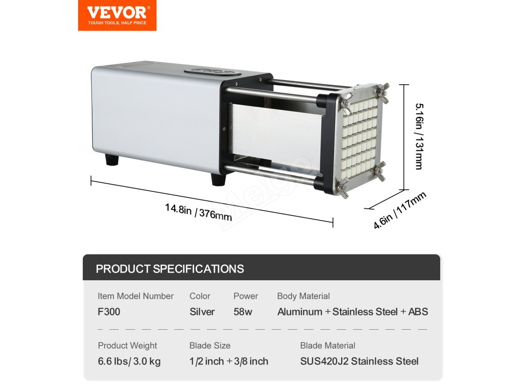 Elektrický krájač na hranolky s 1/2-inch a 3/8-inch nerez čepeľami