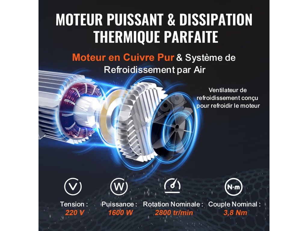 1600W motor z čistej medi pre silný a konzistentný výkon