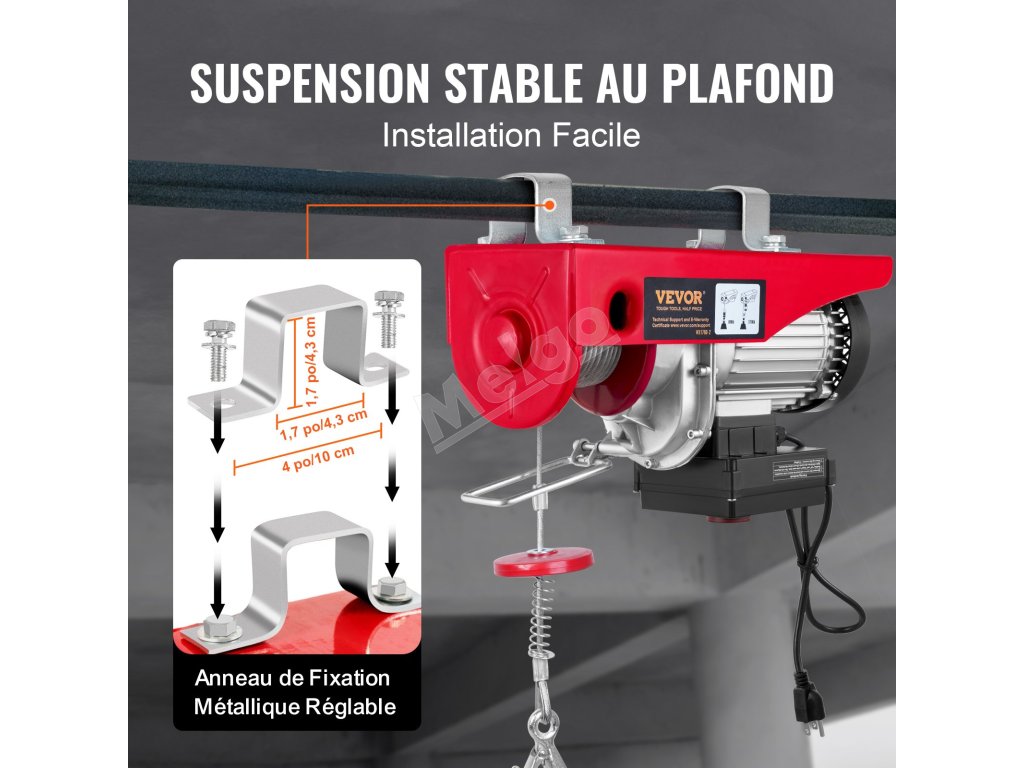 Stropný lanový kladkostroj môžete v garáži alebo na pracovisku postaviť rýchlo a bez starostí. Elektrický lanový kladkostroj VEVOR môžete zavesiť na kovové alebo drevené trámy. Na jeho inštaláciu nepotrebujete špeciálne náradie ani zručnosti. To znamená, že kladkostroj začnete rýchlo používať na zdvíhanie vecí, keď to najviac potrebujete, s dobrou rýchlosťou. Pretože je montáž jednoduchá, môžete lanový kladkostroj premiestňovať. To vám dáva voľnosť a šetrí čas, pričom udržiavate organizáciu zásob a jednoduchý servis.