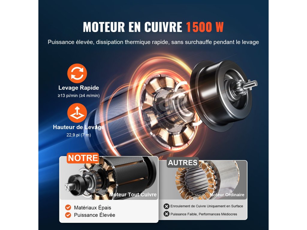 Zvýšte efektivitu s prémiovým medeným motorom a hliníkovou prevodovkou nášho elektrického žeriavu s navijakom. Nejde len o výkon - ide o 1500 W hladko a chladne pracujúcich svalov, ktoré sú ideálne na dlhé zdvíhanie.