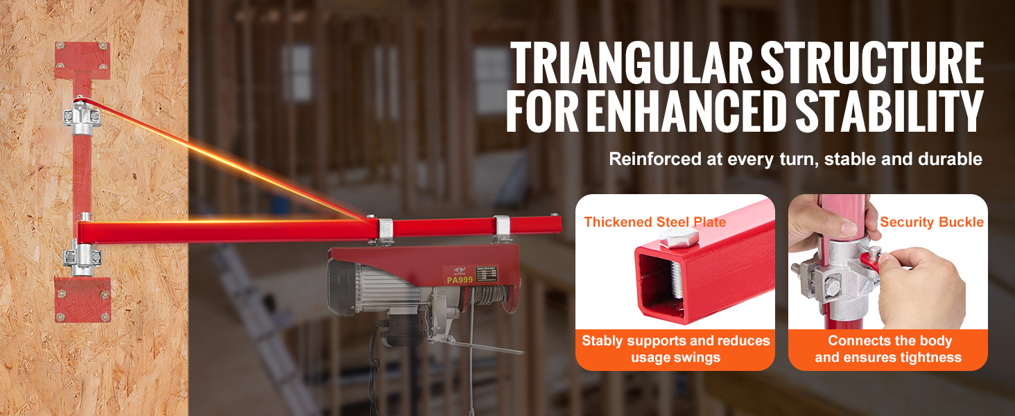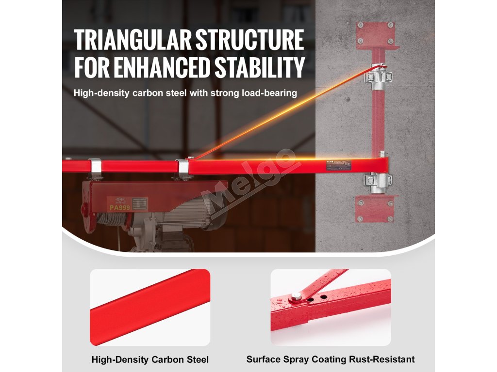Toto rameno kladkostroja, ktoré kombinuje trojuholníkovú konštrukciu so zosilnenou technológiou, minimalizuje kývanie vďaka konštrukcii zo zosilneného oceľového plechu. Bezpečnostné západky zabezpečujú bezpečné spojenia medzi komponentmi. Je to ideálna voľba pre tie práce, pri ktorých sa zdvíhajú ťažké predmety, a poskytuje pokoj a spoľahlivosť.
