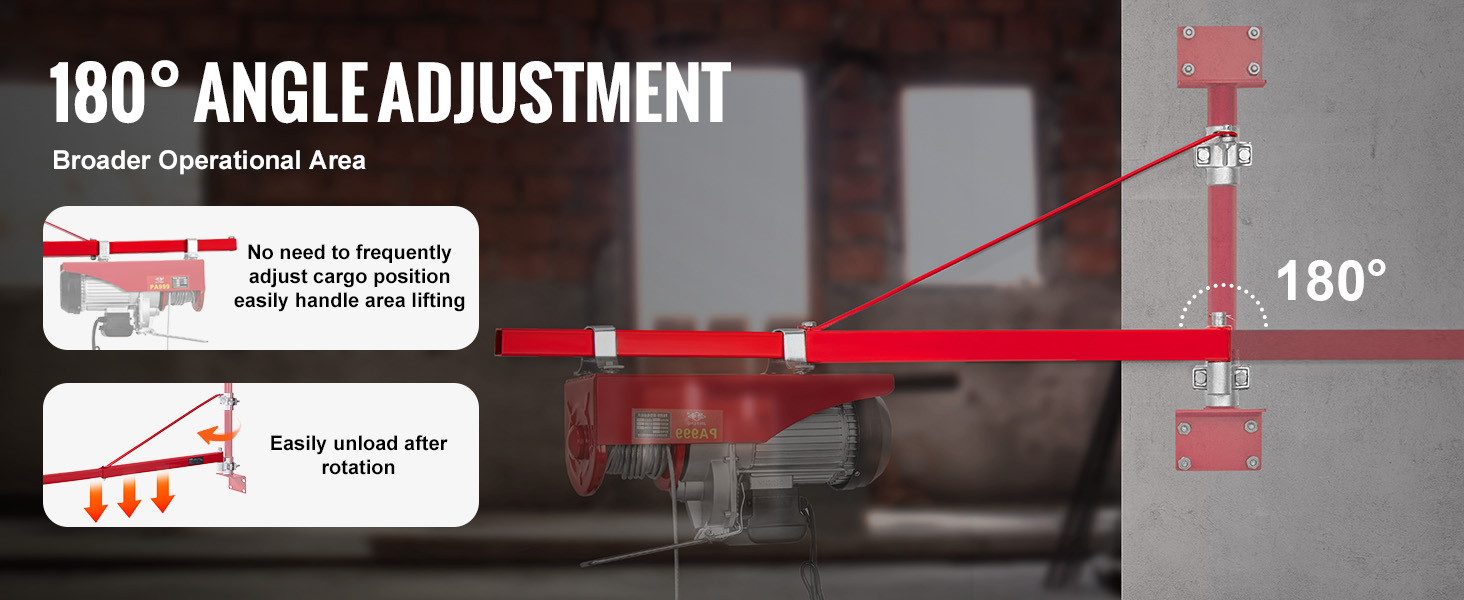 Zvládnite zdvíhacie úlohy ako profesionál vďaka funkcii nastavenia uhla 180° nášho elektrického zdvíhacieho ramena. Rozširuje váš prevádzkový rozsah, vďaka čomu budú zdvíhacie úlohy hračkou bez problémov s neustálym nastavovaním.