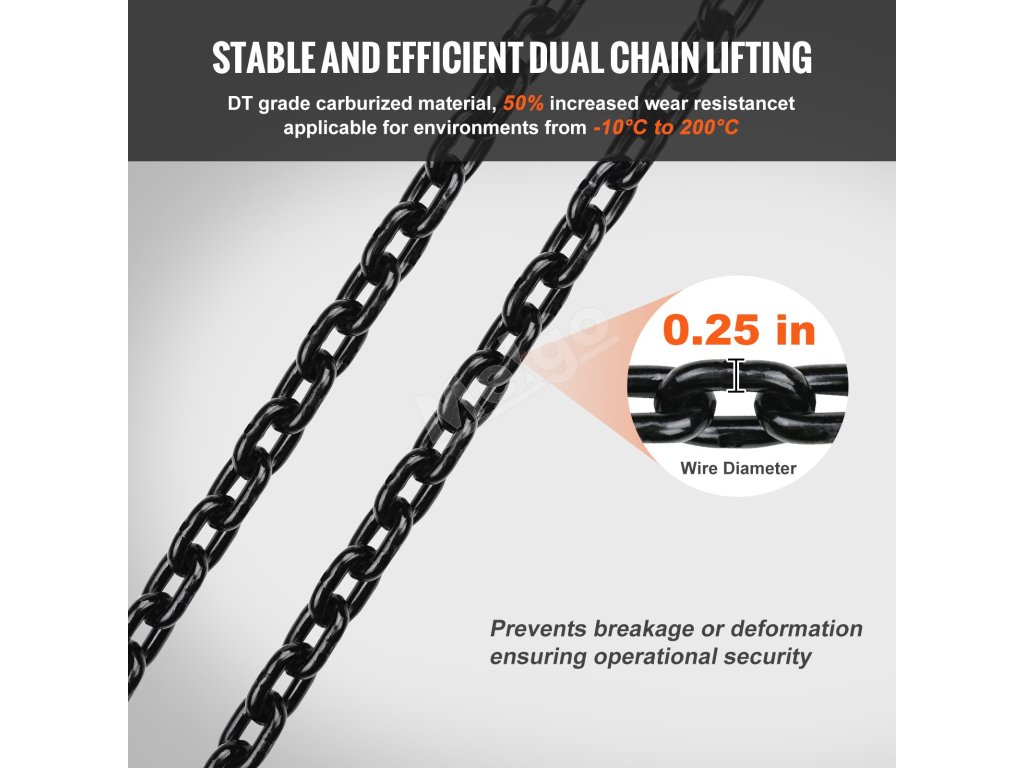 Tento reťazový elektrický kladkostroj poháňaný medeným motorom s izoláciou triedy F znesie teplo až 155 °C. Otáča sa rýchlosťou 11 500 otáčok za minútu a má dostatok sily na to, aby zvládol prácu bez ohľadu na prostredie.