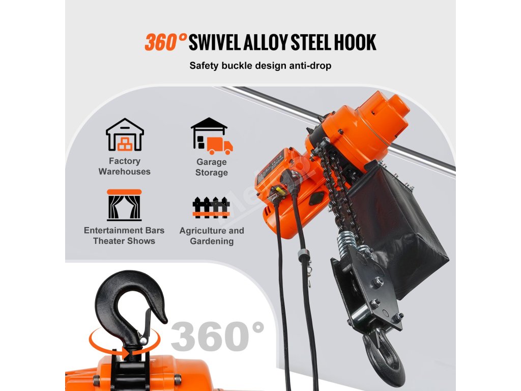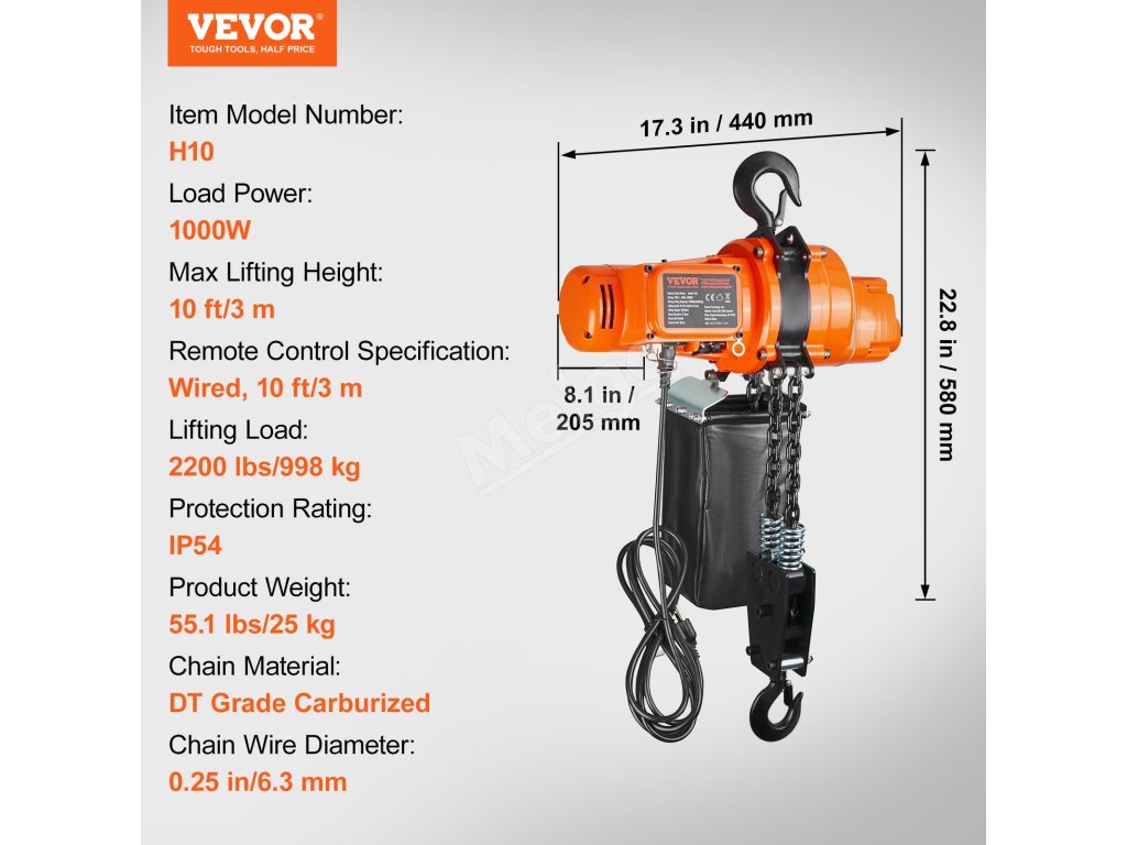 Zdolávajte akýkoľvek ťažký zdvihák so silou 2200 libier! Náš elektrický reťazový zdvihák je vašou stávkou na istotu pri úlohách v garáži a dielni. Vďaka stupňu krytia IP54 do každého počasia a prostredia je vaším spoľahlivým pomocníkom.