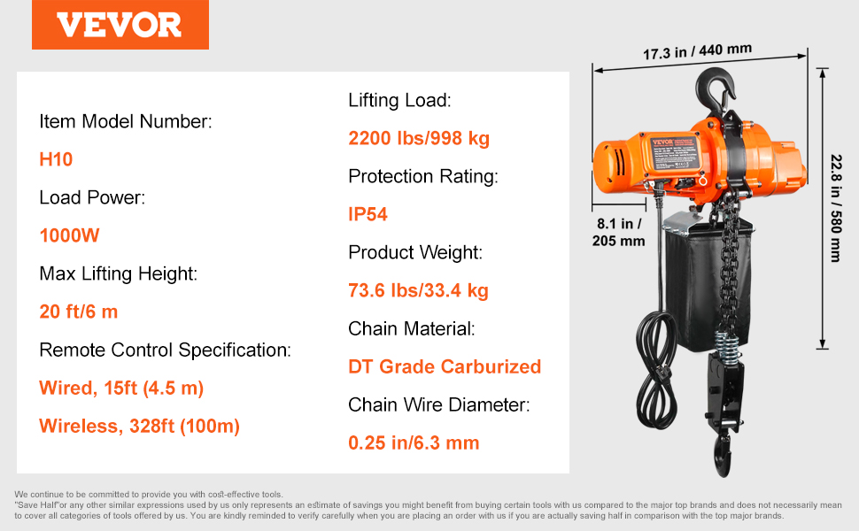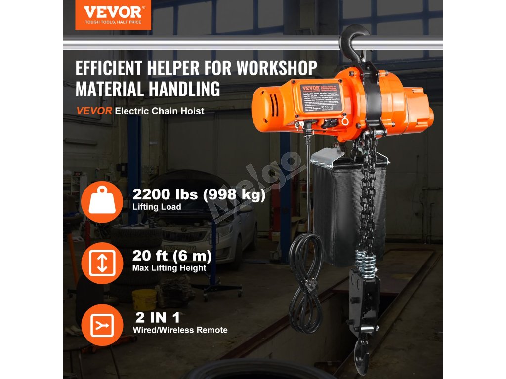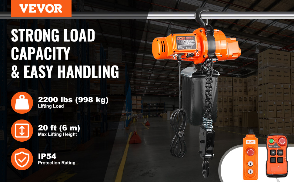 Zdolávajte akýkoľvek ťažký zdvihák so silou 2200 libier! Náš elektrický reťazový zdvihák je vašou stávkou na istotu pri úlohách v garáži a dielni. Vďaka stupňu krytia IP54 do každého počasia a prostredia je vaším spoľahlivým pomocníkom.