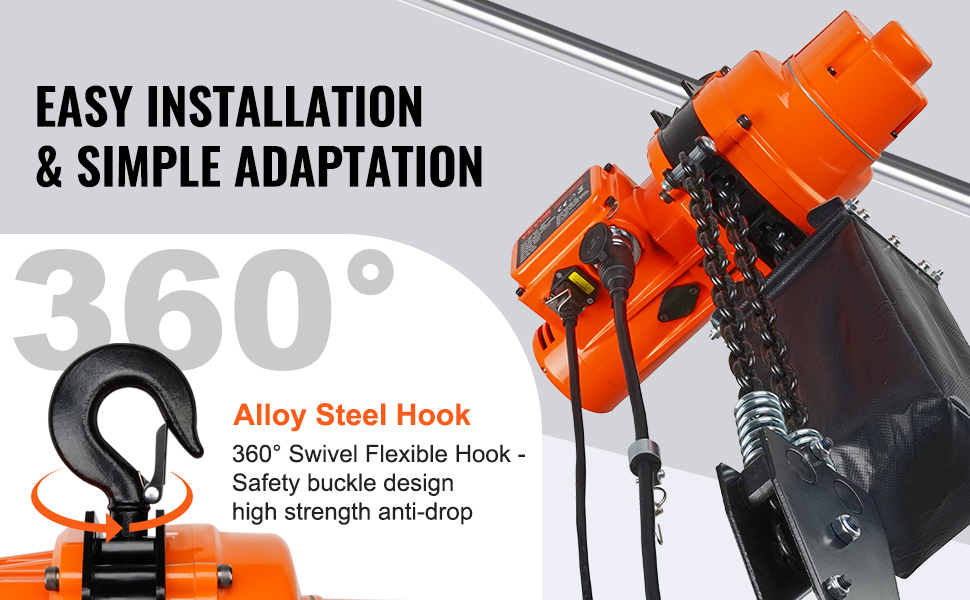 Tento reťazový elektrický kladkostroj poháňaný medeným motorom s izoláciou triedy F znesie teplo až 155 °C. Otáča sa rýchlosťou 11 500 otáčok za minútu a má dostatok sily na to, aby zvládol prácu bez ohľadu na prostredie.