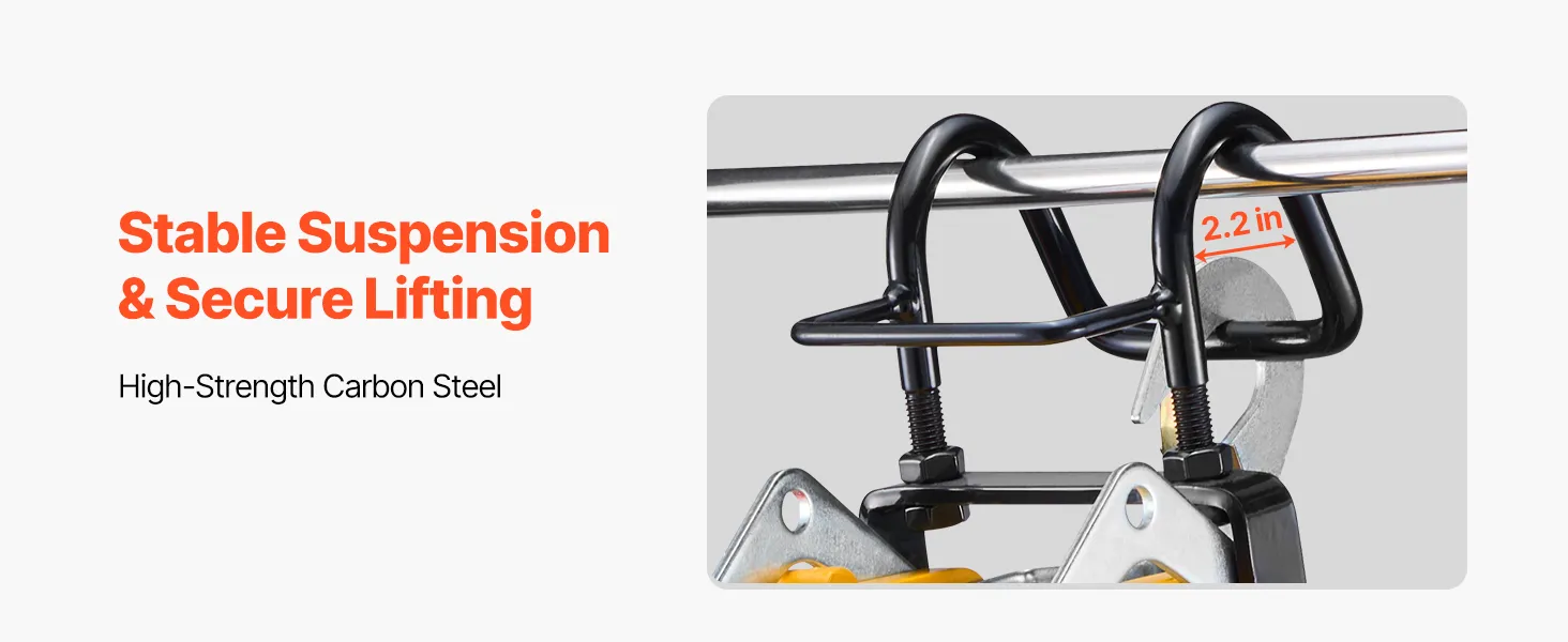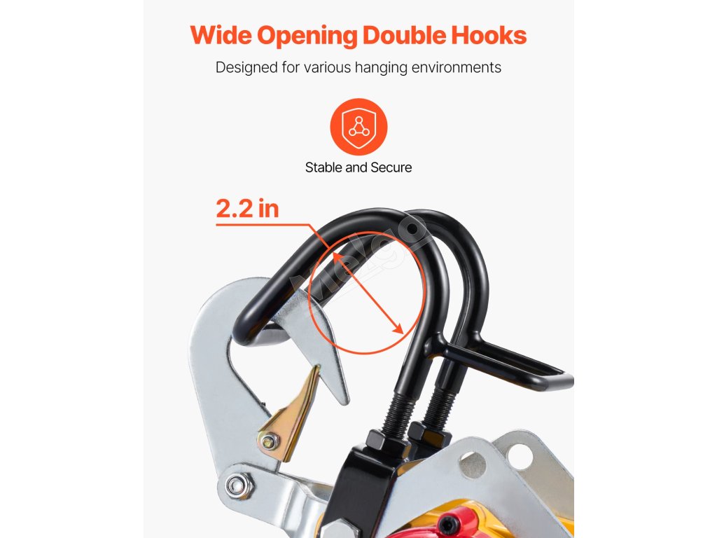 Konštrukcia s dvojitým hákom nášho prenosného kladkostroja zaručuje stabilitu a bezpečnosť, takže sa už nemusíte obávať zdvíhania ťažkých predmetov.